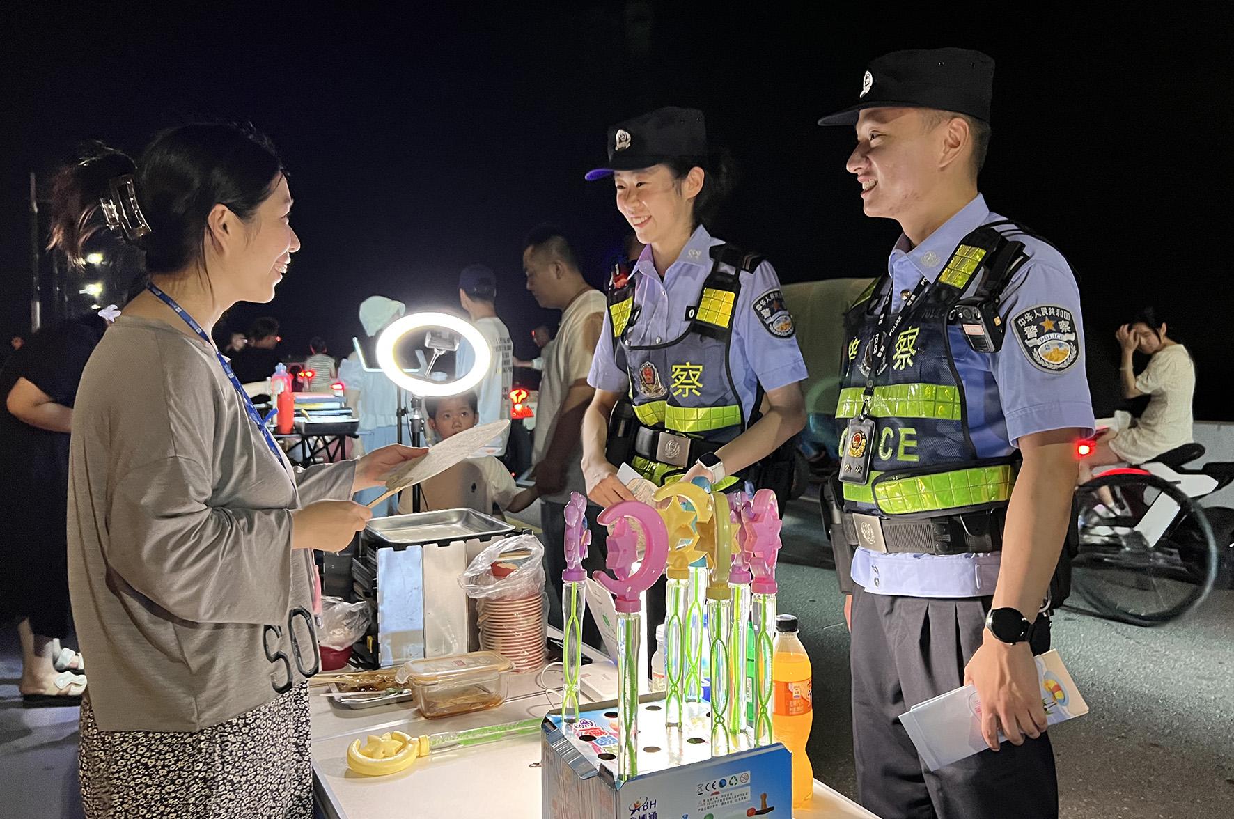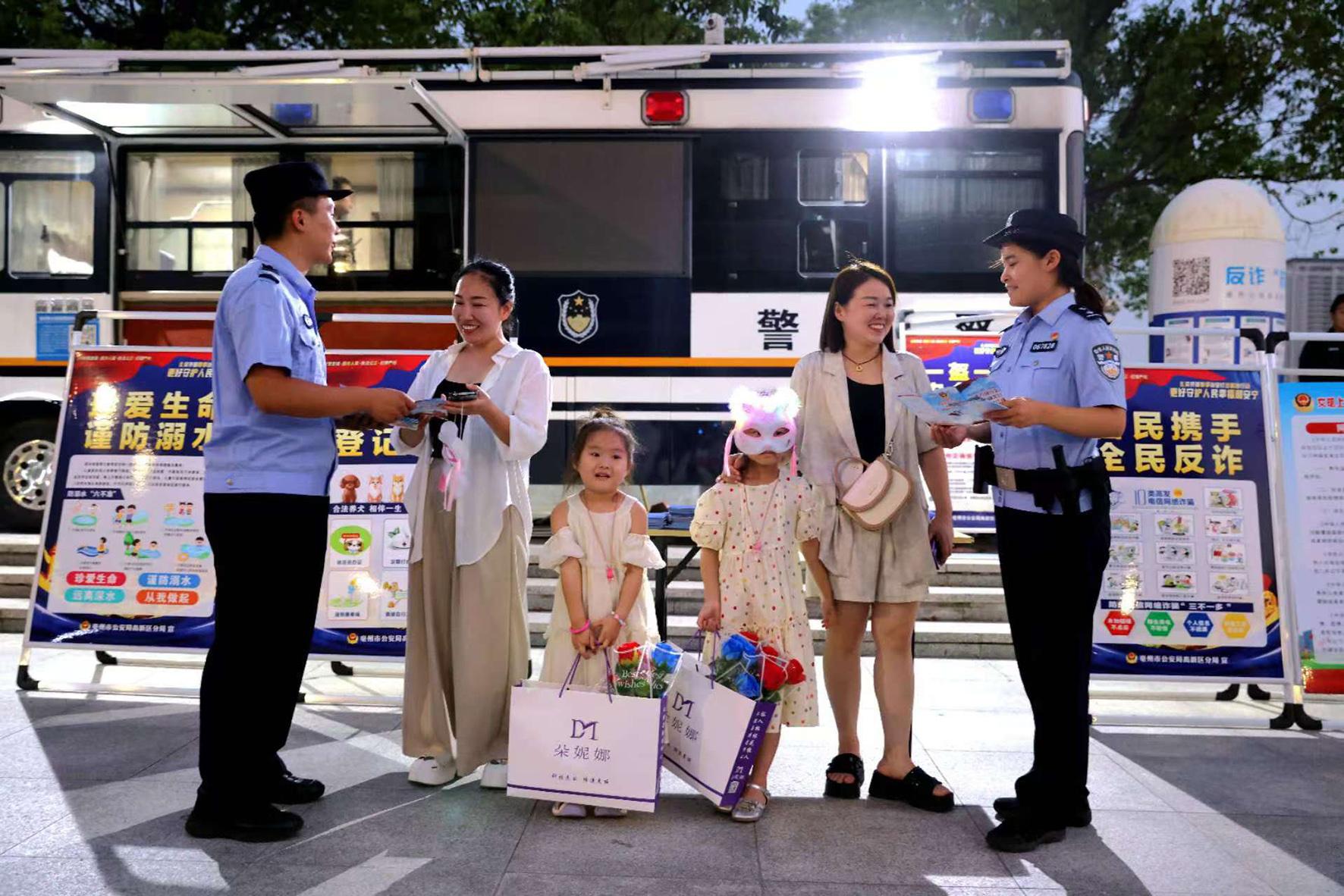 8月10日晚,河南省浚縣公安局結(jié)合夏夜治安巡查宣防集中統(tǒng)一行動,加大對轄區(qū)商圈、夜市、廣場等人員密集場所的檢查巡邏守護力度,向群眾宣傳反詐、禁毒、拒賭、防火防盜等安全防范知識。