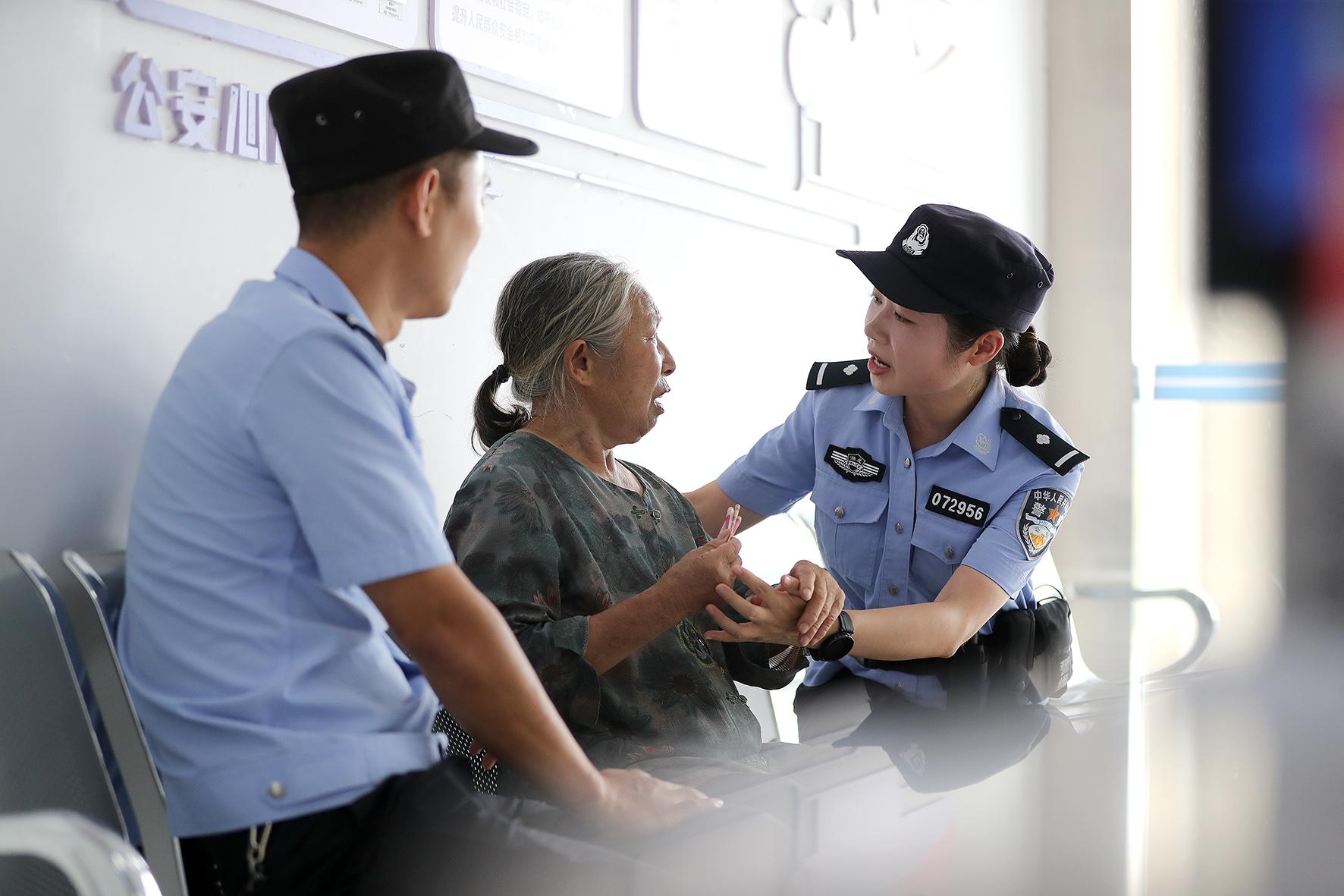 民警將謝婆婆攙扶進(jìn)派出所,第四次將錢還給老人。