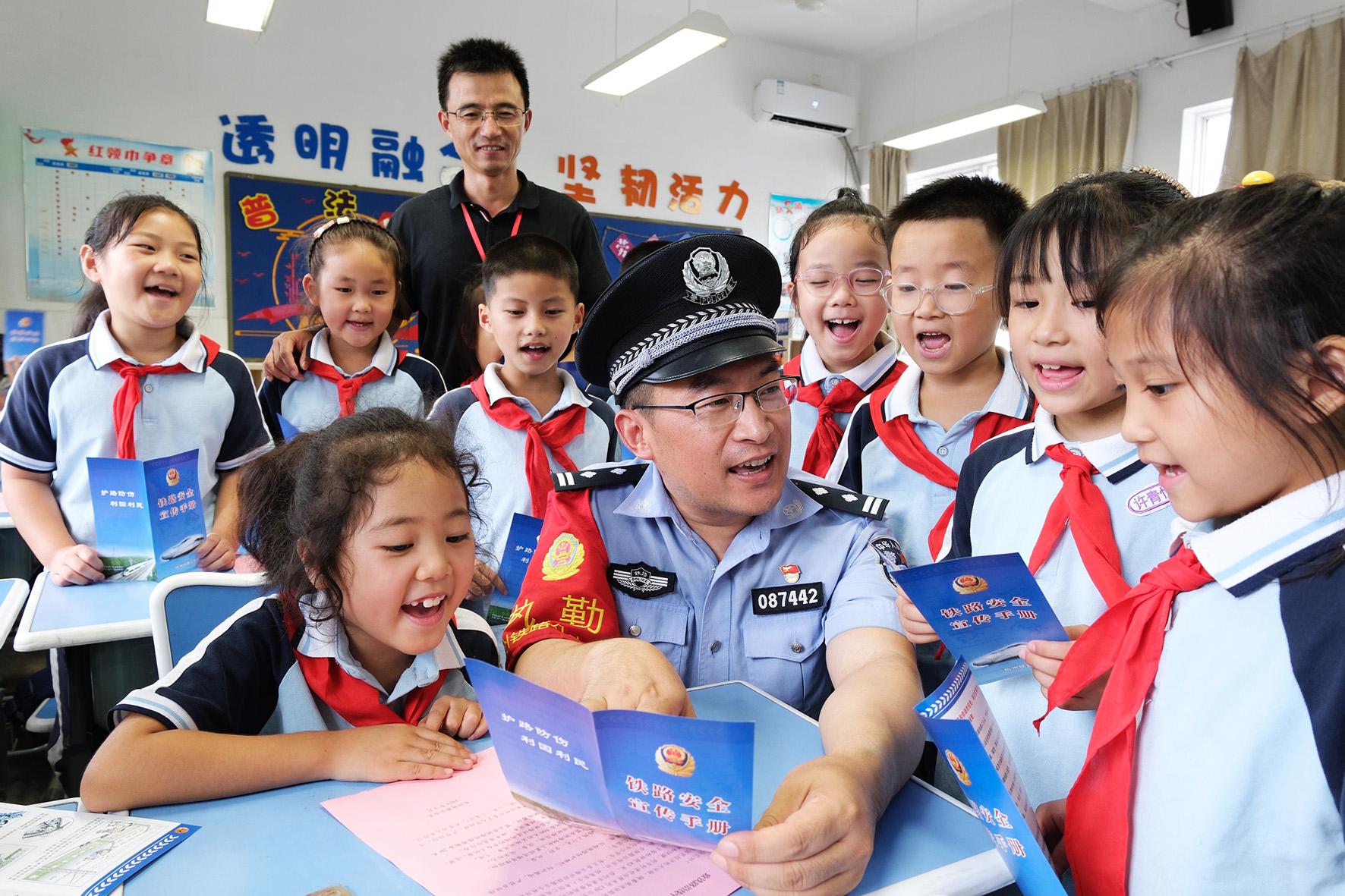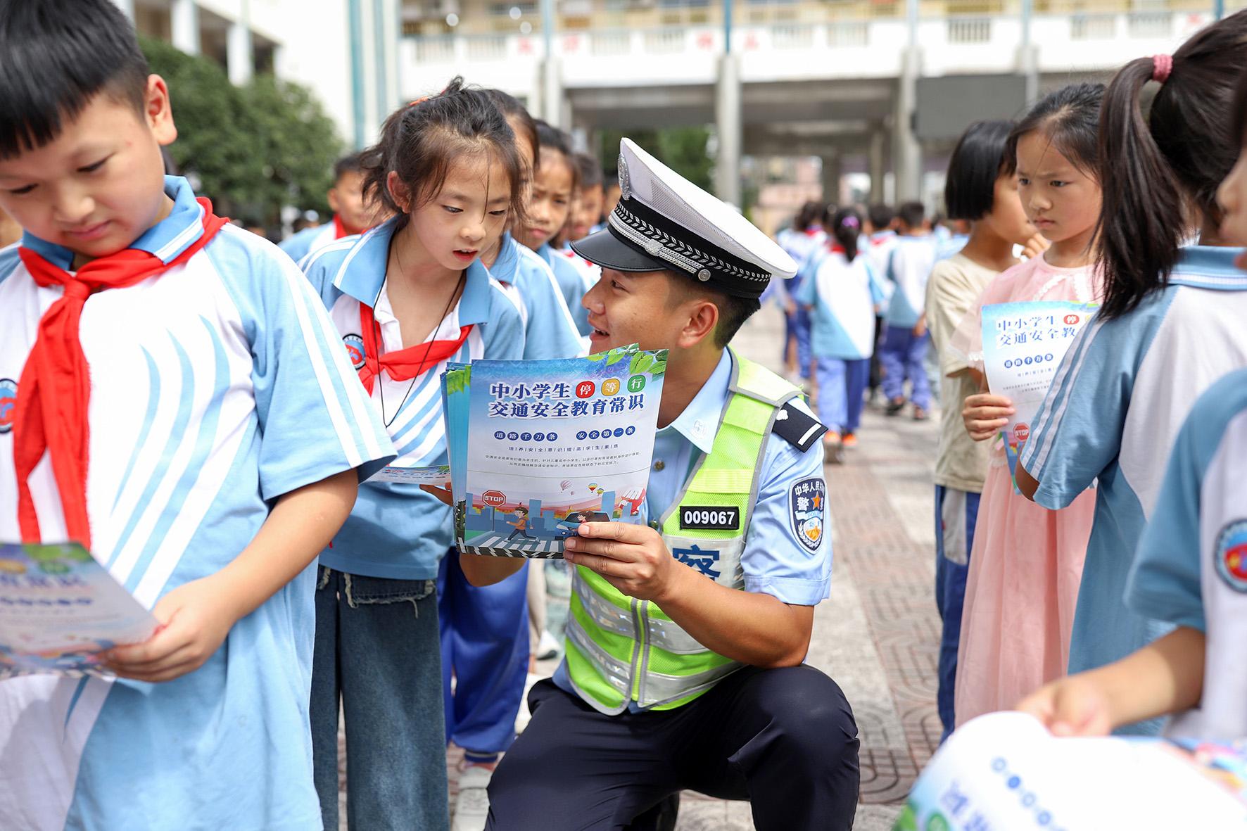 9月2日,貴州省黔東南苗族侗族自治州丹寨縣公安局交警大隊組織宣傳民警走進轄區(qū)中小學校園,向廣大師生宣傳普及道路交通安全知識。