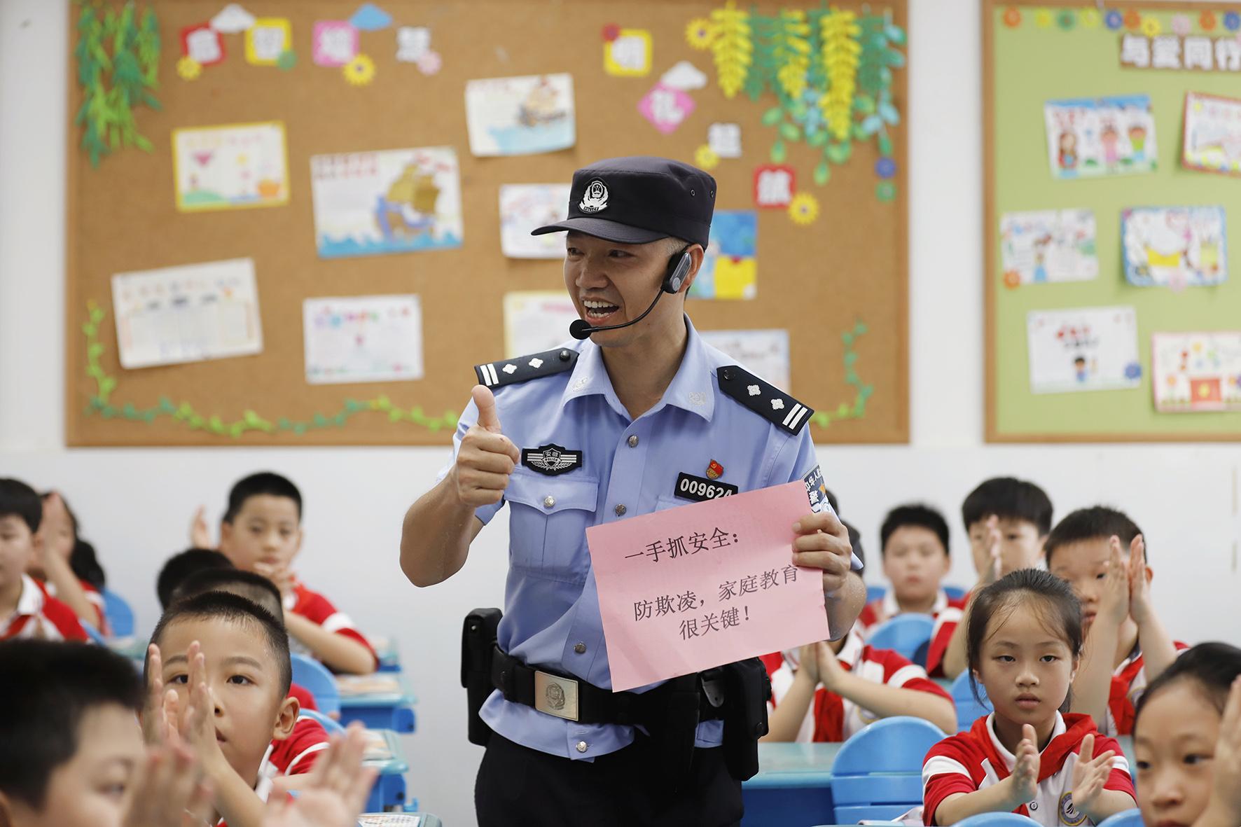 9月2日,浙江省臺州市公安局黃巖分局新前派出所民警來到新前小學,給學生們上“開學安全課”。