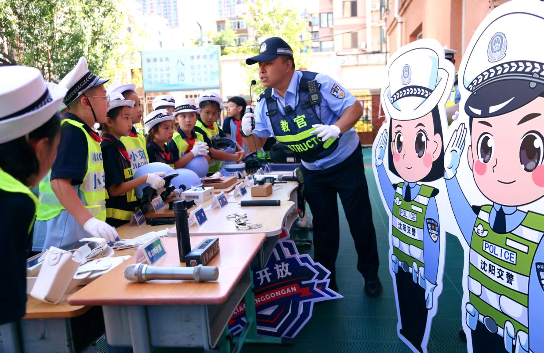 9月2日,遼寧省沈陽市公安局交通警察局沈河大隊民警開展“法潤平安 文明相伴”開學第一課交通安全宣傳活動。