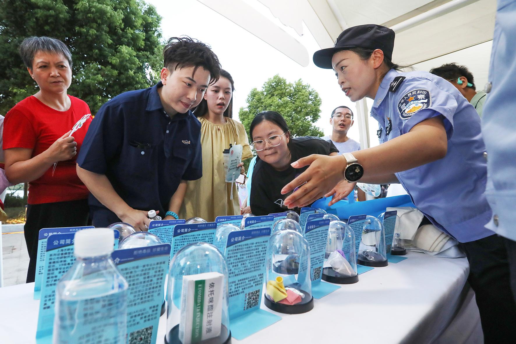 9月13日,江蘇省宜興市公安局禁毒大隊在宜興市中秋文明實踐市集上開展“健康人生 綠色無毒”主題宣傳活動,引導(dǎo)群眾珍愛生命,共同抵御毒品。