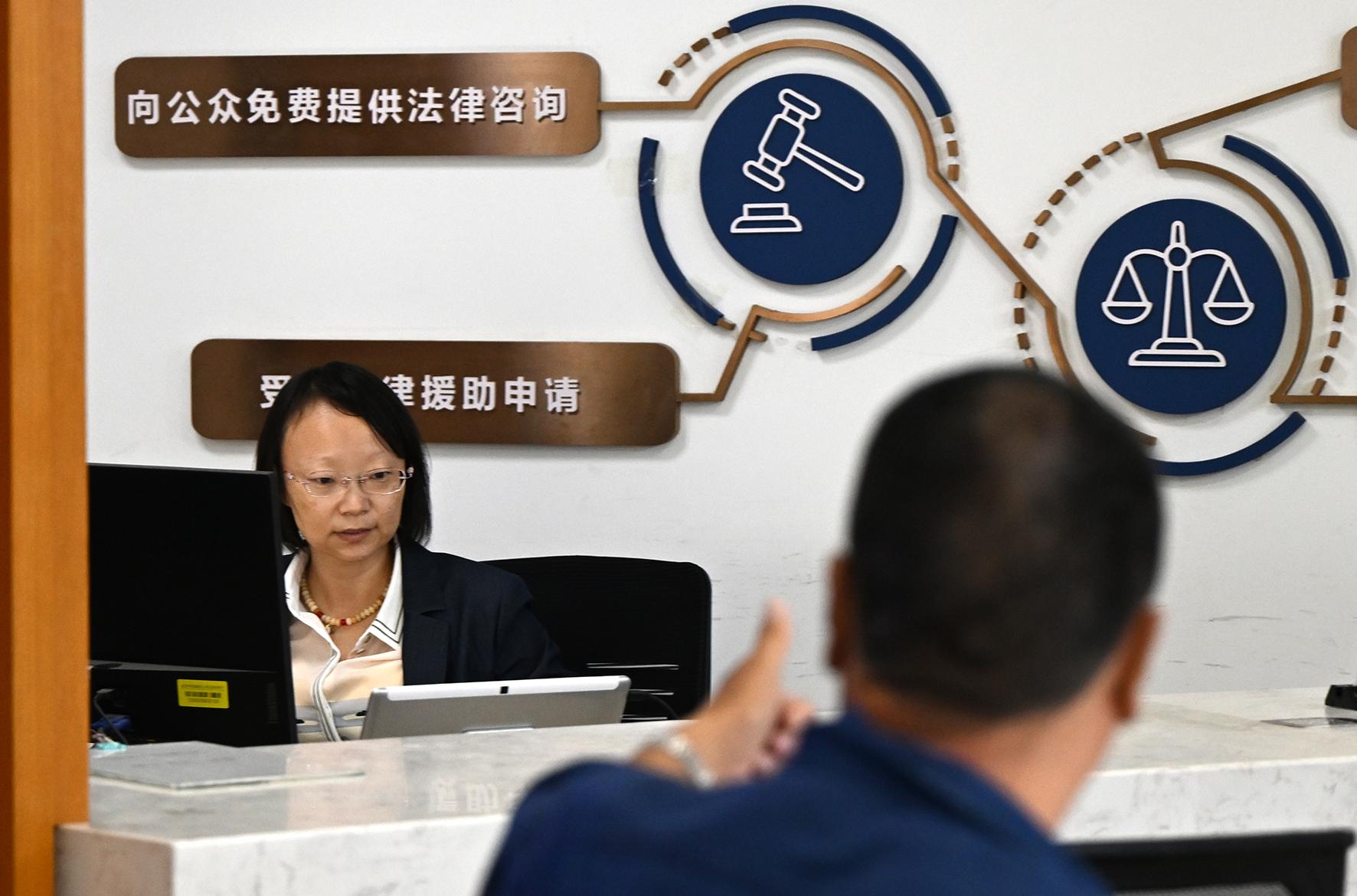 一名群眾的咨詢得到滿意解答后,高興地向法援律師豎起大拇指表示感謝。2015年起,西城區(qū)司法局法援中心律師每周定時(shí)來(lái)法院提供訴訟咨詢、代寫文書及法律援助服務(wù)。