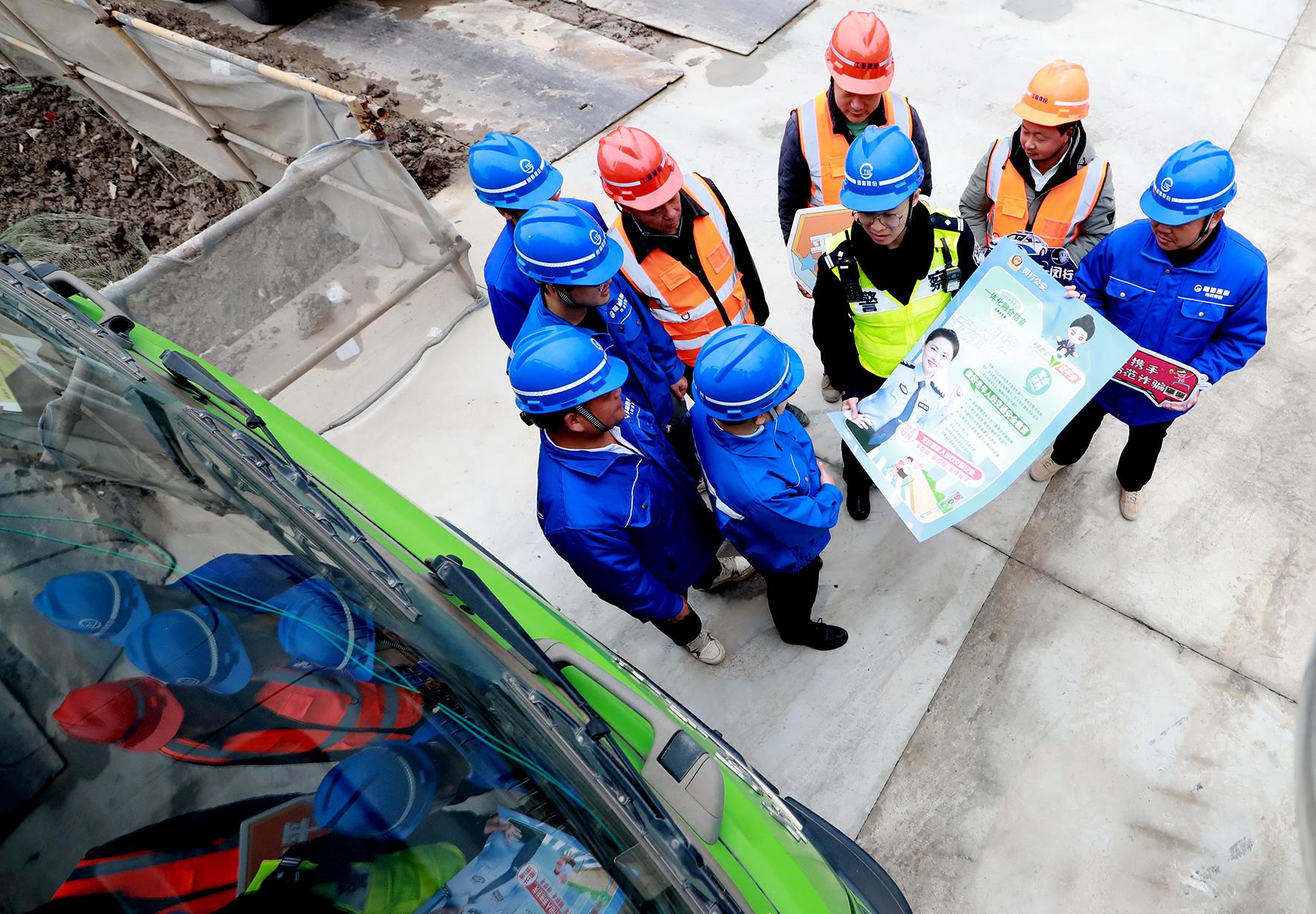 12月13日,上海市公安局閔行分局交警支隊民警在浦江鎮(zhèn)浦江基地1號地塊在建工地開展現(xiàn)場督導檢查,并對現(xiàn)場施工作業(yè)人員開展交通安全融合宣傳。