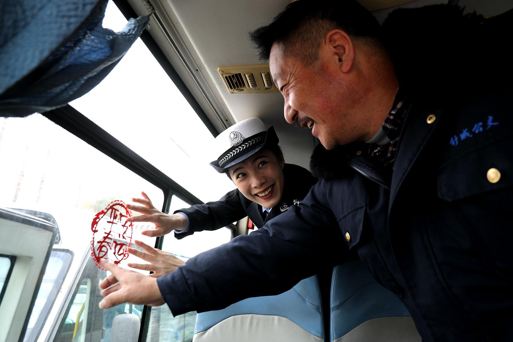 1月14日,安徽省蕪湖市公安局交警支隊鳩江大隊民警走進蕪湖北站公交樞紐,對參與“春運”的50余輛公交車進行安全大檢查。