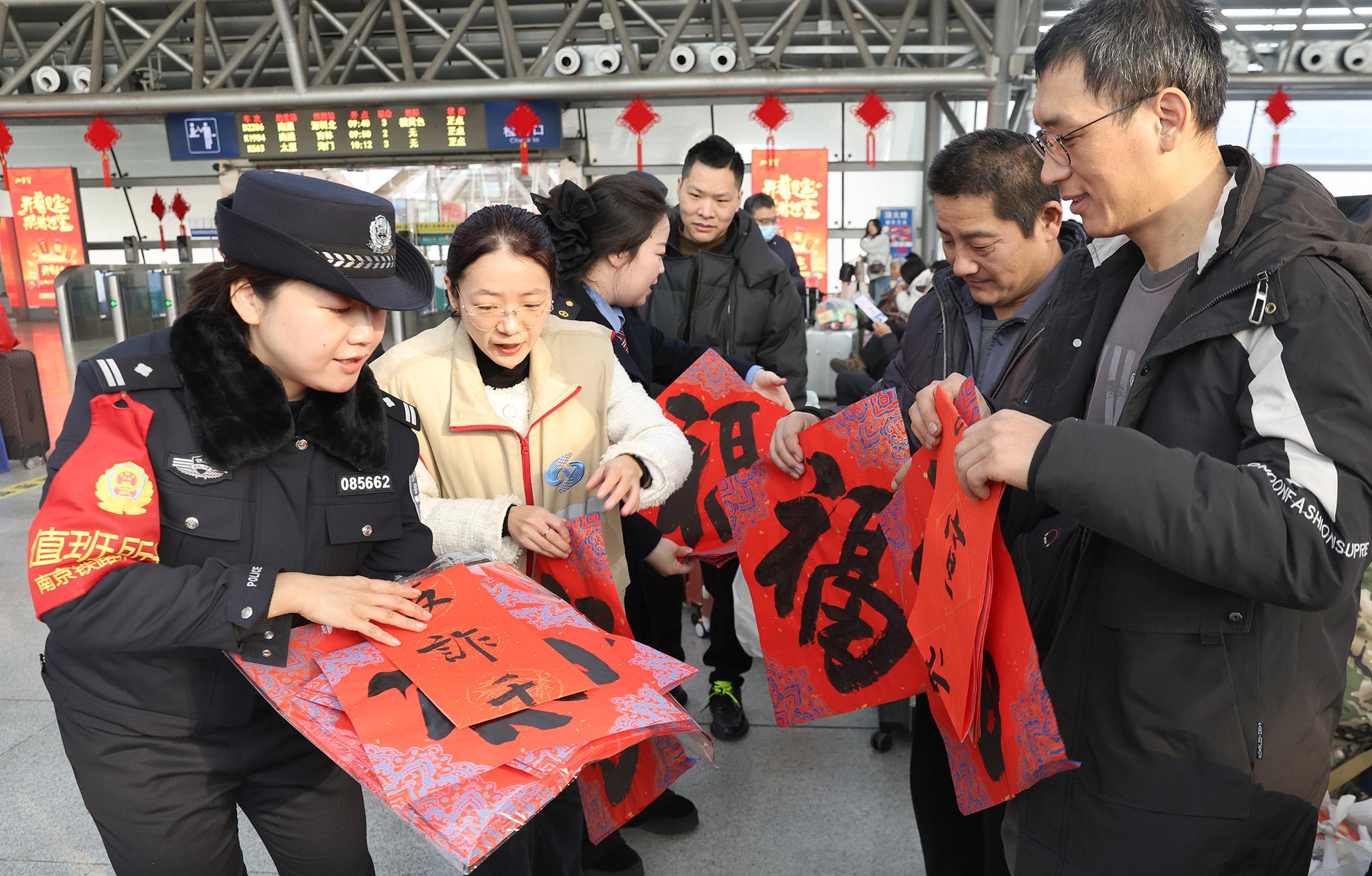 1月14日,春運首日。南京鐵路公安處南通站派出所、南通市公安局公交分局站前派出所聯(lián)合幸福街道開展情暖春運活動。