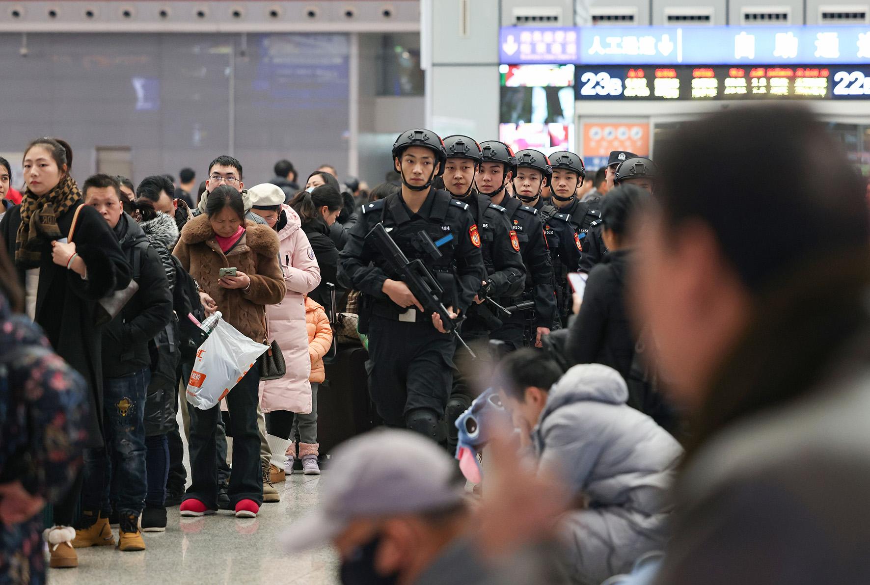 1月14日,春運首日,南京鐵路公安處泰州站派出所強化站區(qū)和線路治安管控,全力以赴護航旅客安全出行。