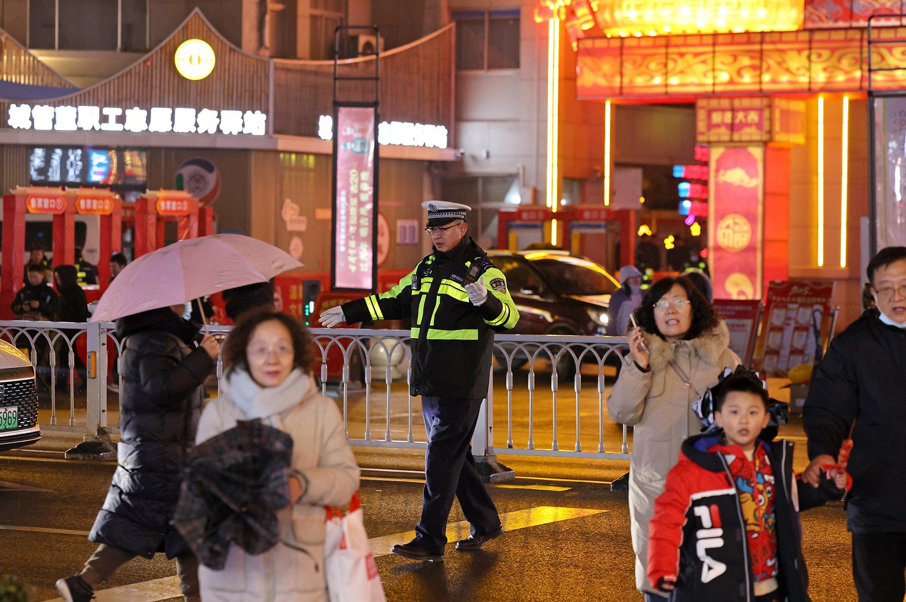2月11日,山東省棗莊市公安局市中分局交通警察大隊組織民輔警在花燈會的主干道重點路段、路口設置臨時執(zhí)勤點,保障道路安全暢通和賞燈游玩的群眾出行安全。