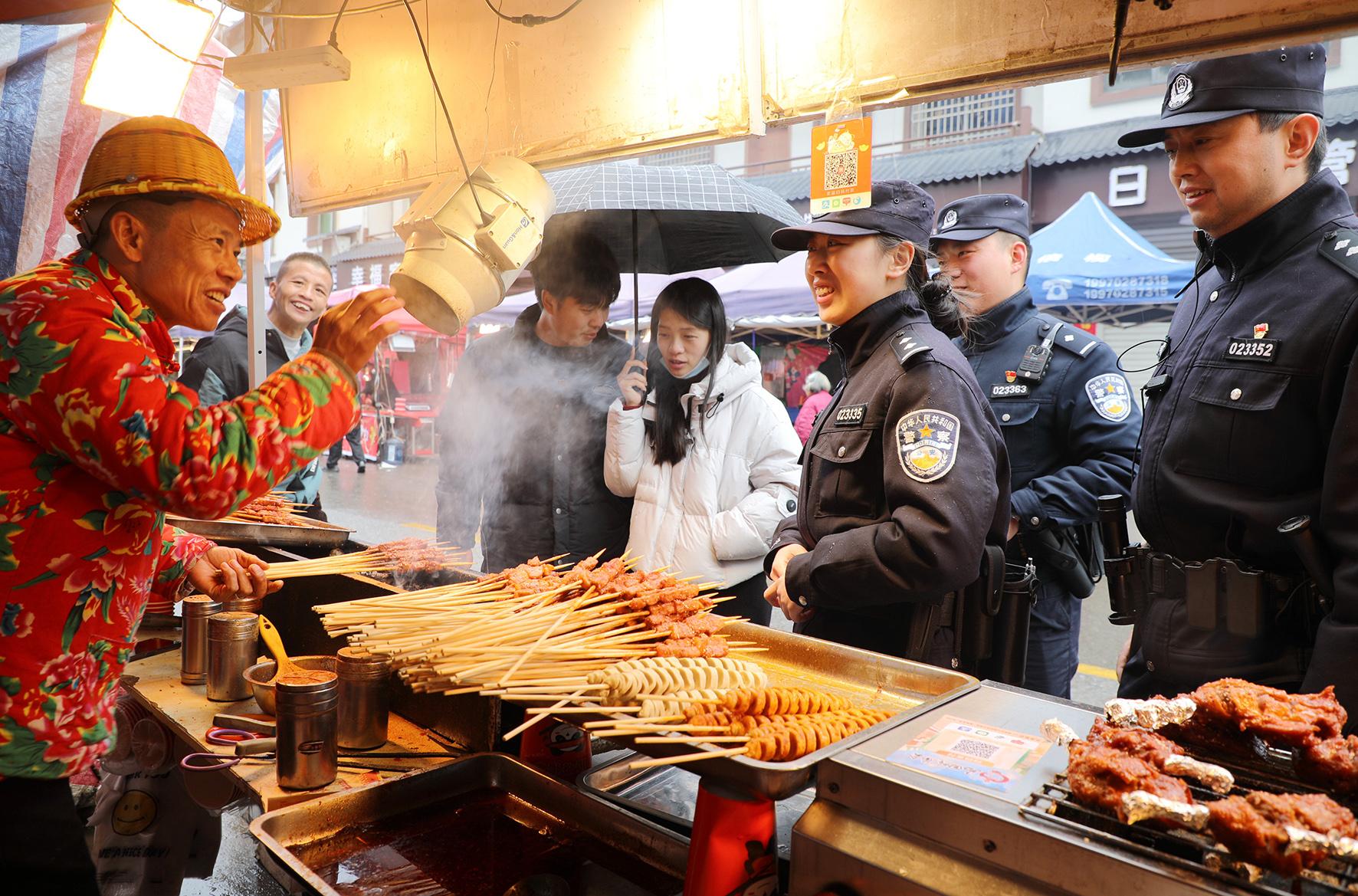 3月3日,江西省九江市柴桑區(qū)公安局民警在馬回嶺鎮(zhèn)一年一度的“百年廟會(huì)”現(xiàn)場(chǎng)巡邏執(zhí)勤。