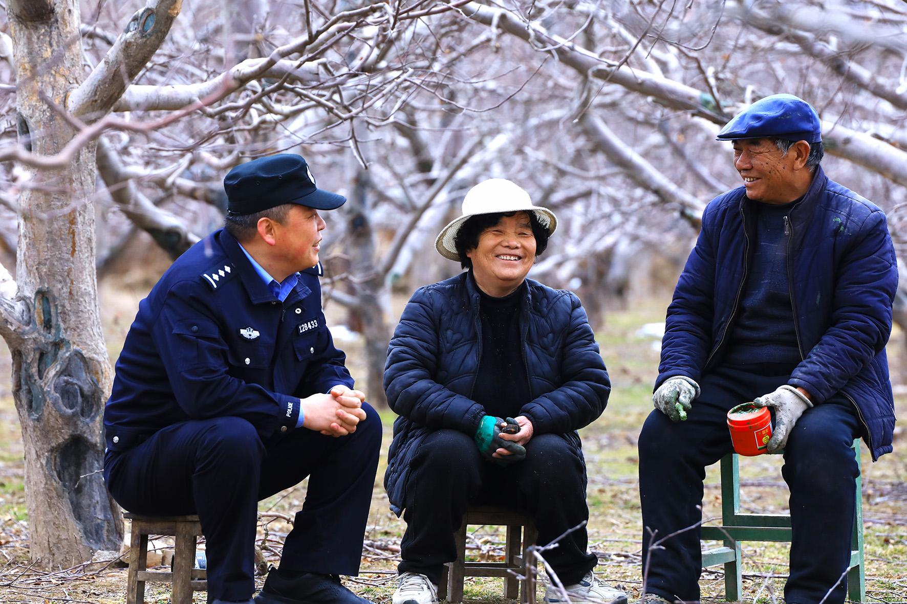 3月4日,甘肅隴南禮縣公安局永興派出所民輔警走進田間地頭,了解群眾春耕生產(chǎn)需求,開展法治宣傳。