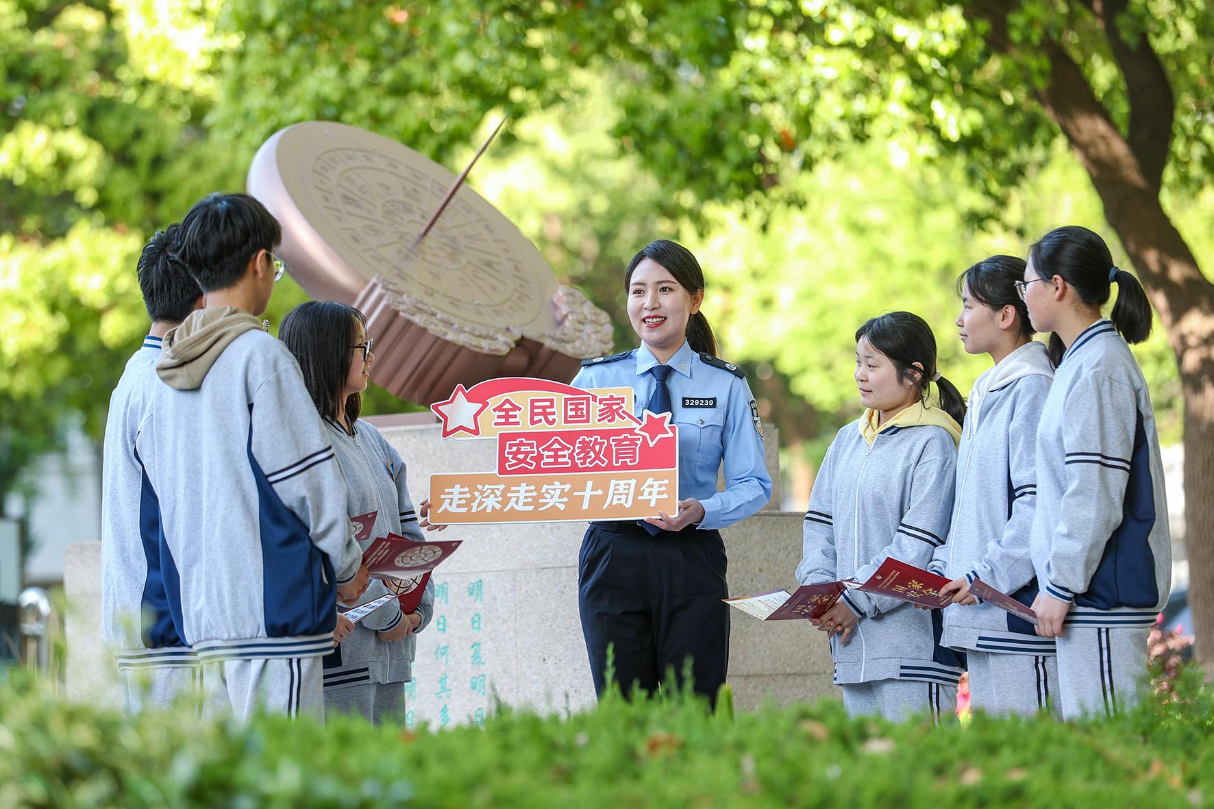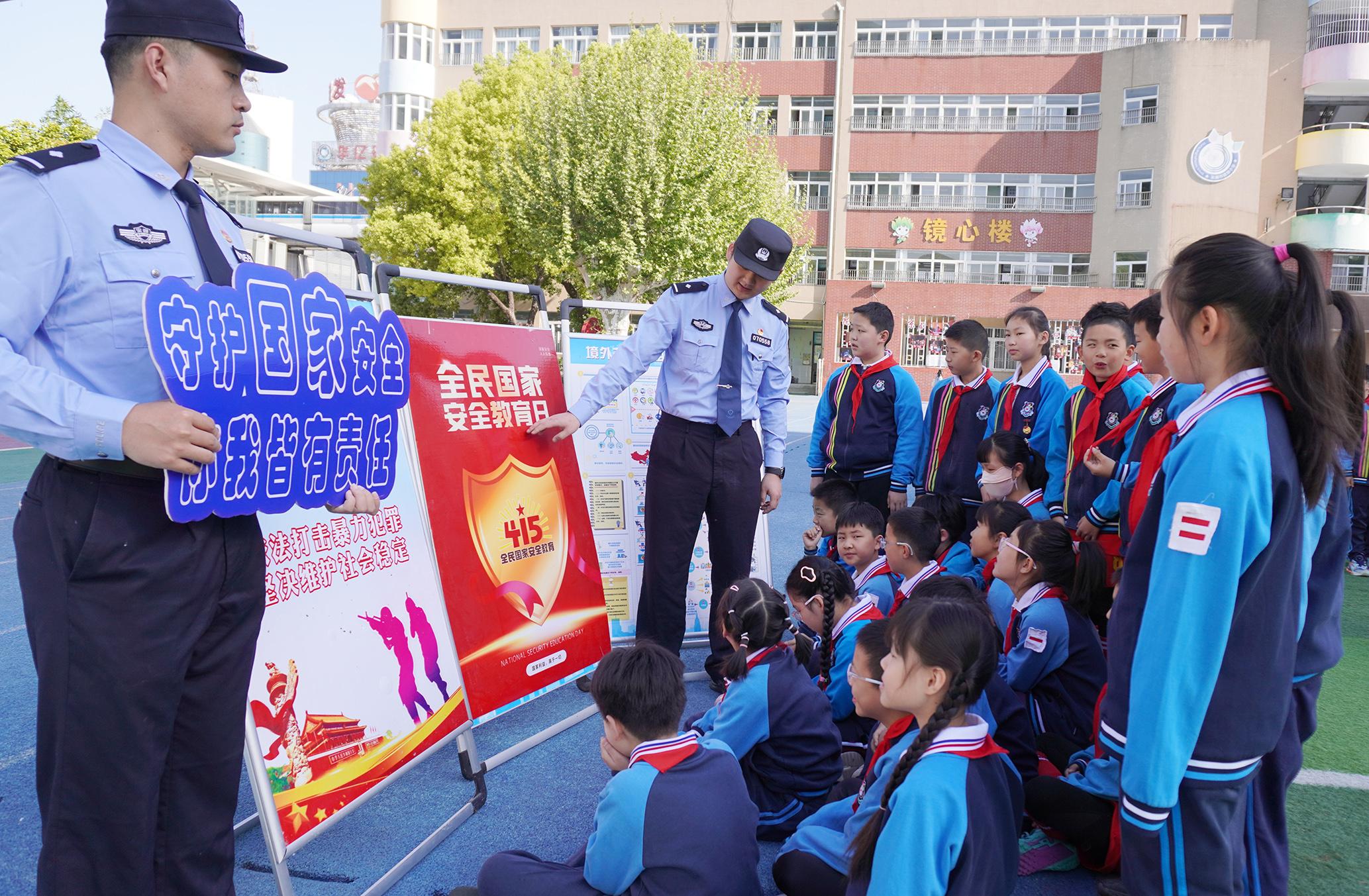 4月14日,江蘇省徐州市公安局鼓樓分局巡特警大隊聯(lián)合環(huán)城派出所在徐州市鼓樓小學(xué)開展全民國家安全教育日進(jìn)校園活動。