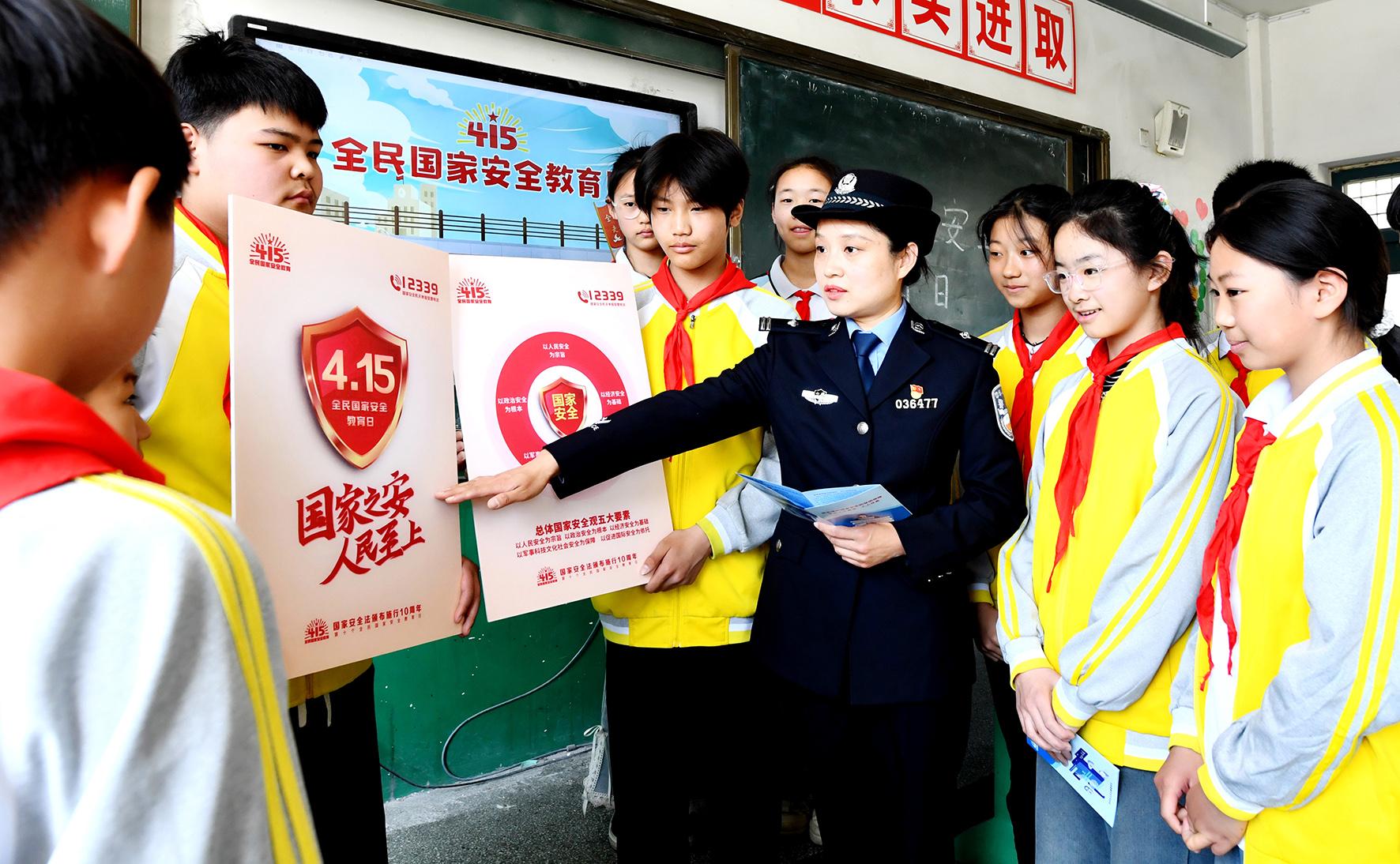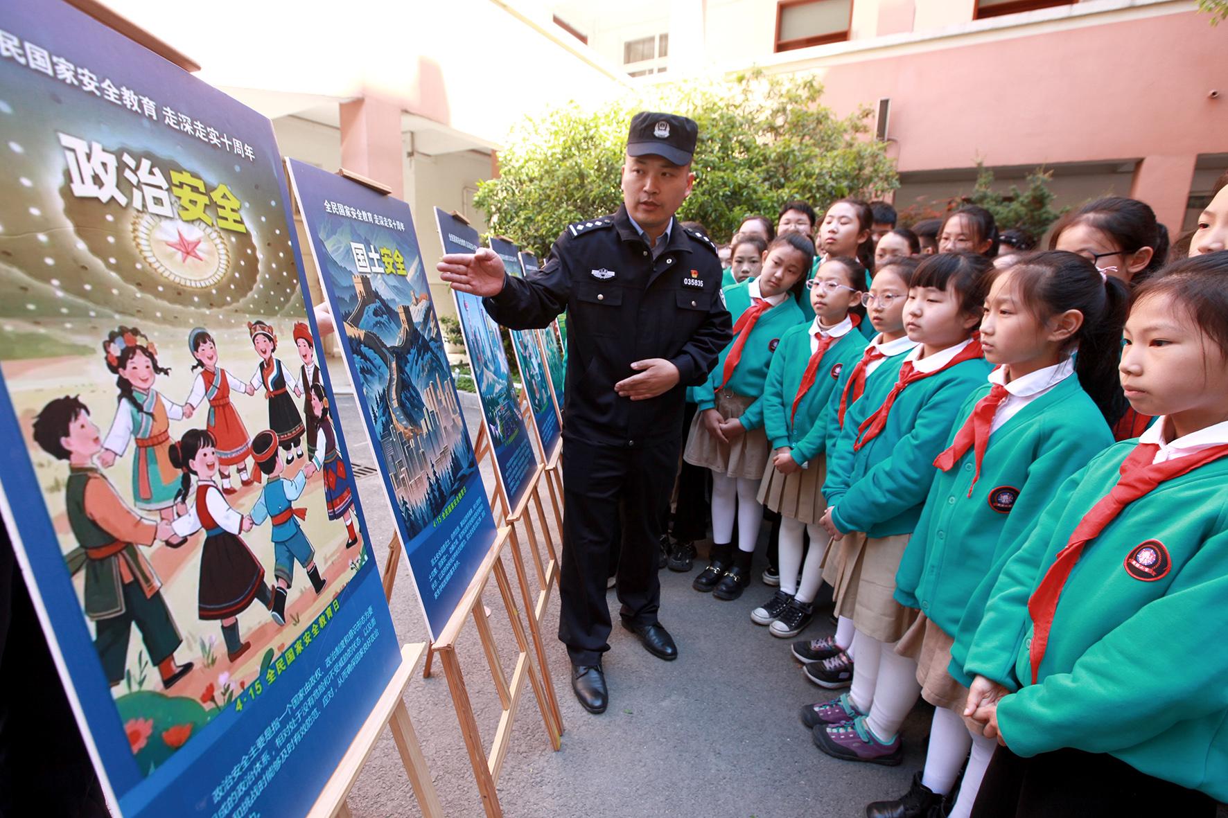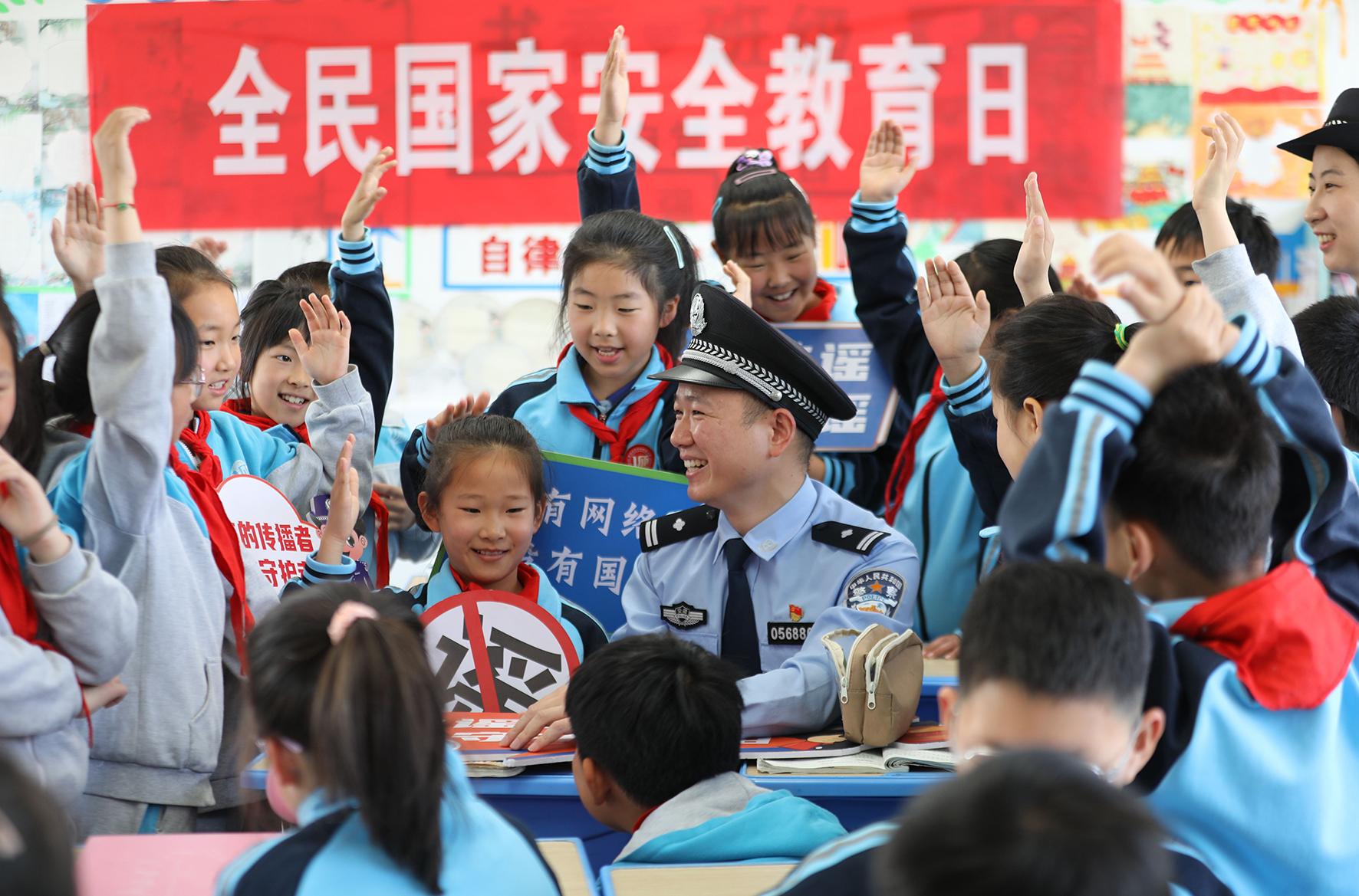 4月14日,山東省棗莊市公安局臺兒莊分局民警走進(jìn)明遠(yuǎn)實驗小學(xué)開展全民國家安全教育日進(jìn)校園活動。