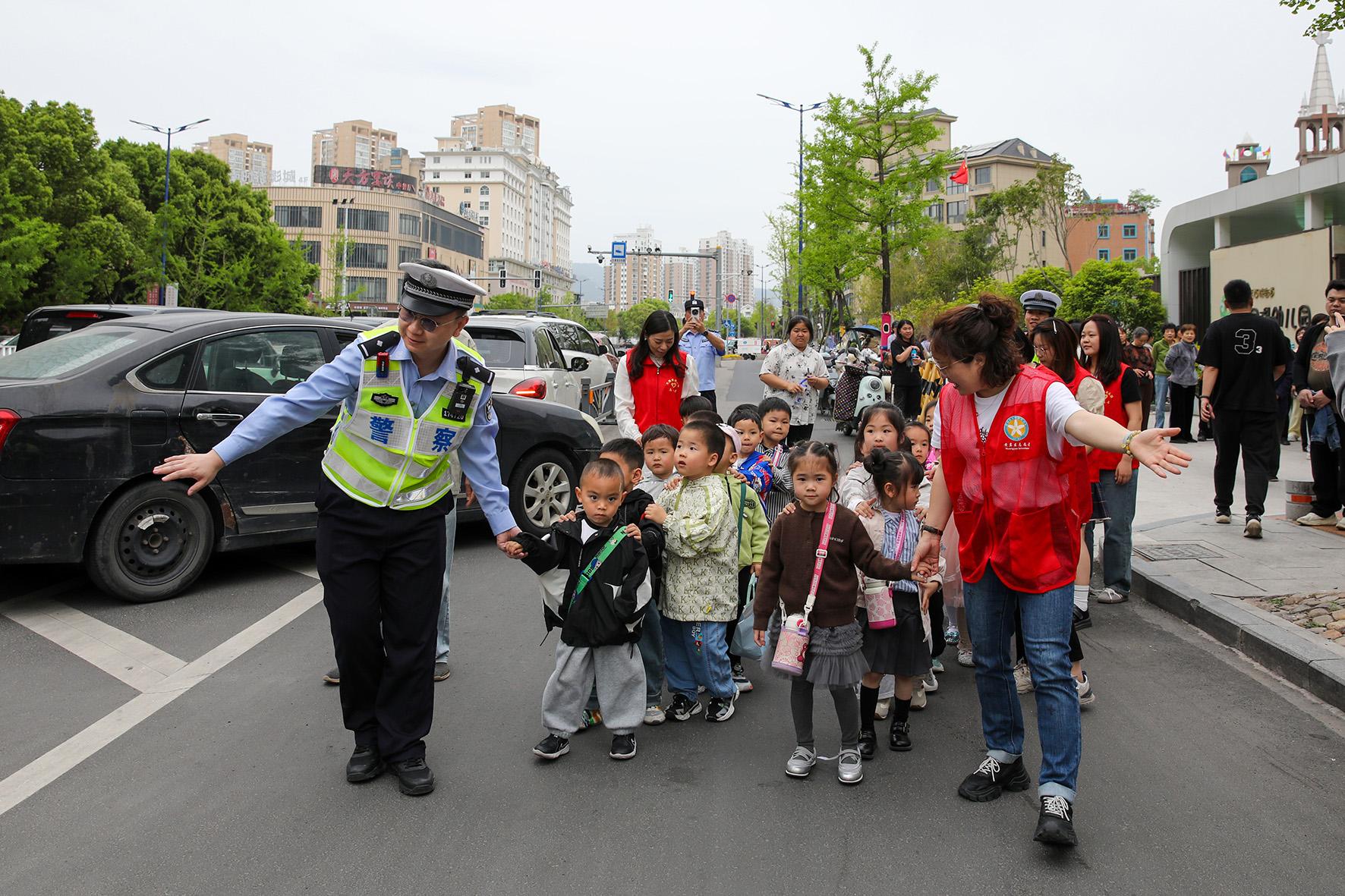 4月16日,浙江省臺州市公安局交警局直屬二大隊民警和西城街道西江社區(qū)工作人員一起站好護學崗,維護校園周邊交通、治安秩序。