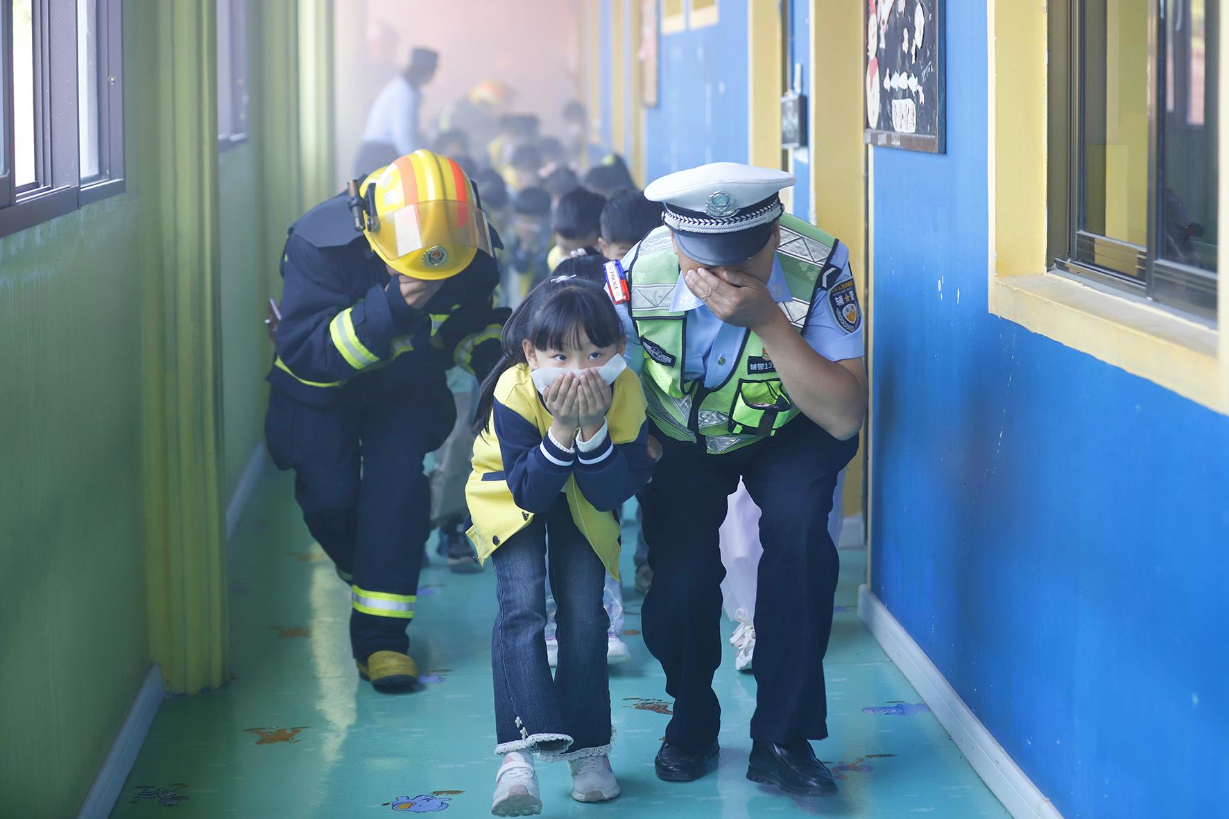 5月12日,安徽省蕪湖市公安局交警支隊鳩江大隊會同消防部門走進蕪湖市二壩小太陽幼兒園,開展“人人講安全 個個會應急——排查身邊災害隱患”主題宣傳活動。