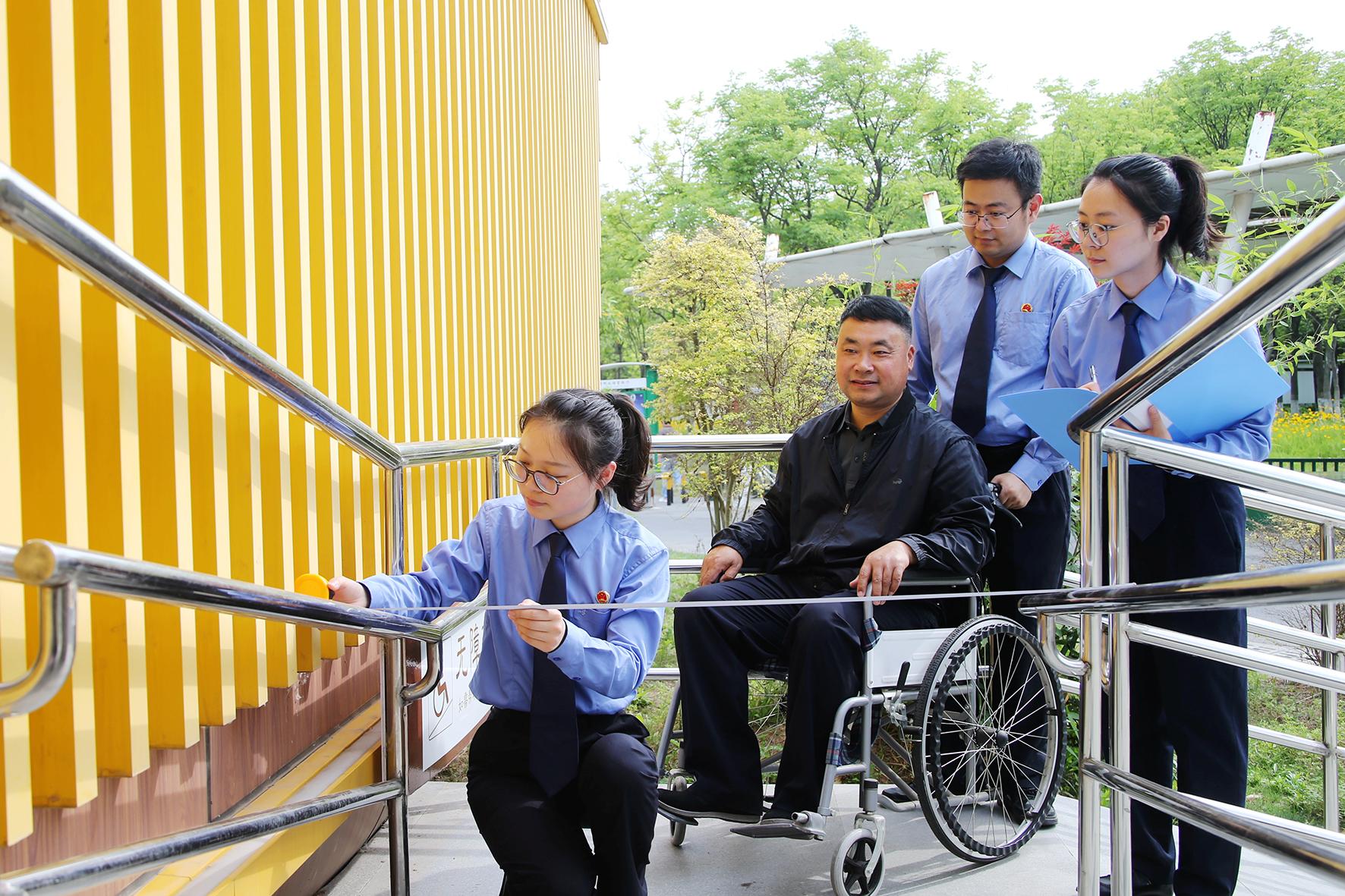 5月13日,在第35個(gè)全國(guó)助殘日前夕,江蘇省睢寧縣檢察院公益訴訟辦案團(tuán)隊(duì)開(kāi)展無(wú)障礙環(huán)境建設(shè)專項(xiàng)監(jiān)督行動(dòng),并陪同殘障人士體驗(yàn)升級(jí)改造后的無(wú)障礙環(huán)境設(shè)施。