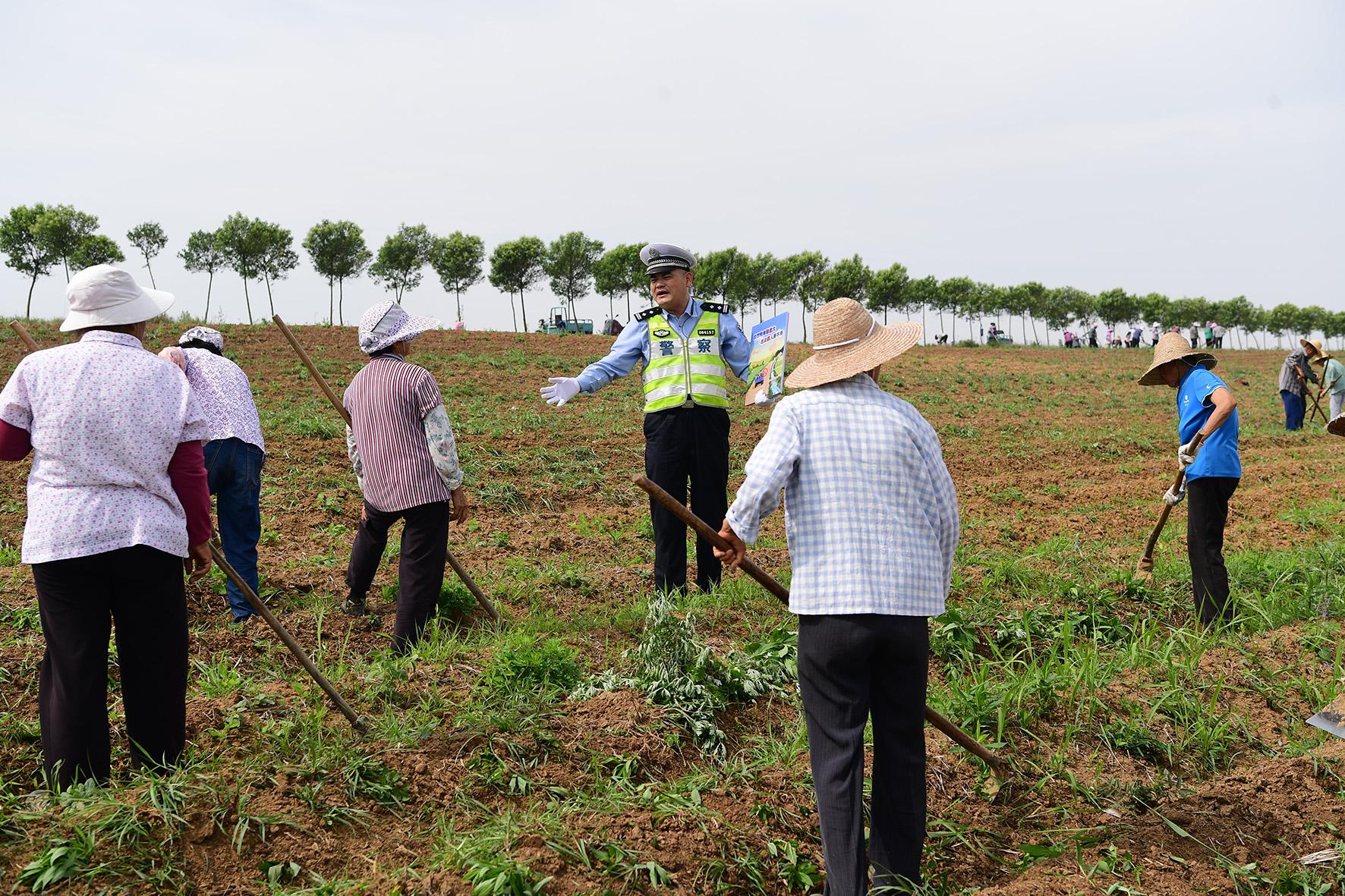 5月17日,安徽省巢湖市公安局交警大隊(duì)民警走進(jìn)田間地頭,向從事夏種的群眾開(kāi)展交通安全宣傳。