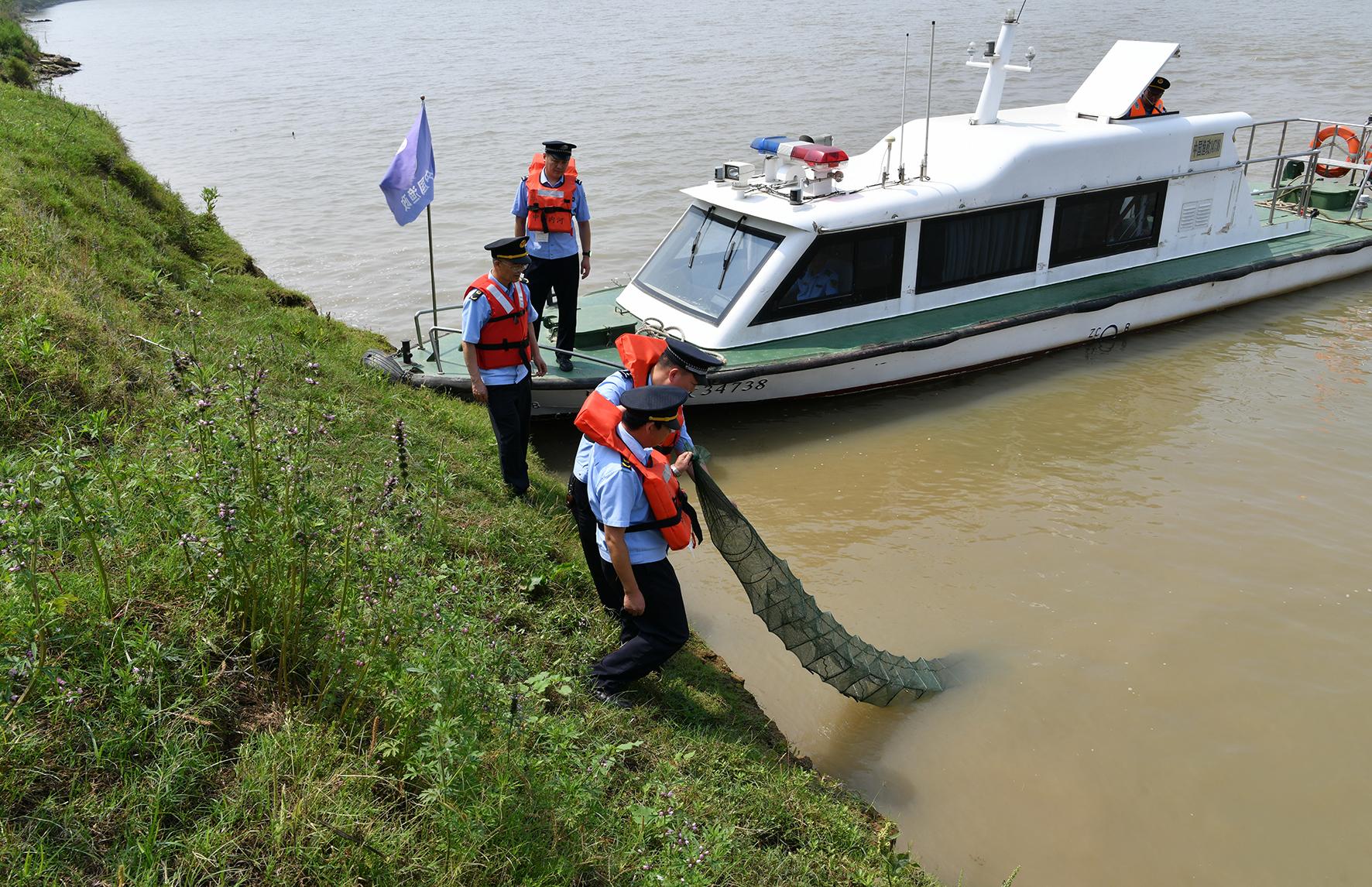 5月29日,安徽省阜南縣公安局森林民警和農(nóng)業(yè)執(zhí)法人員在淮河流域曹集鎮(zhèn)段收繳非法捕撈漁具。阜南縣公安局聯(lián)合縣農(nóng)業(yè)執(zhí)法大隊(duì)、市場監(jiān)督管理局等部門開展淮河流域水上聯(lián)合巡查行動,筑牢淮河生態(tài)環(huán)境安全屏障。