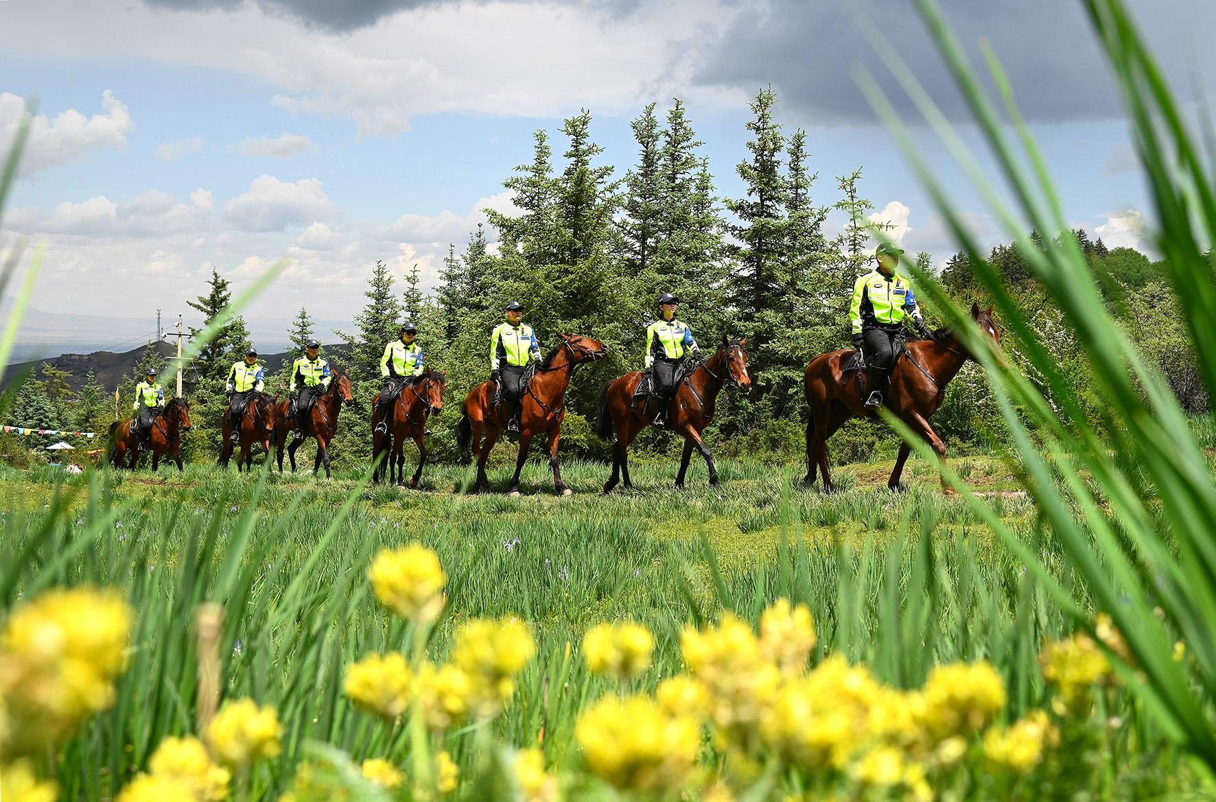 6月20日,甘肅省肅南縣公安局騎警隊(duì)在祁連山國(guó)家公園馬蹄段開(kāi)展巡邏,扎實(shí)推進(jìn)生態(tài)警務(wù)工作,為守護(hù)祁連山的綠水青山筑起堅(jiān)實(shí)屏障。