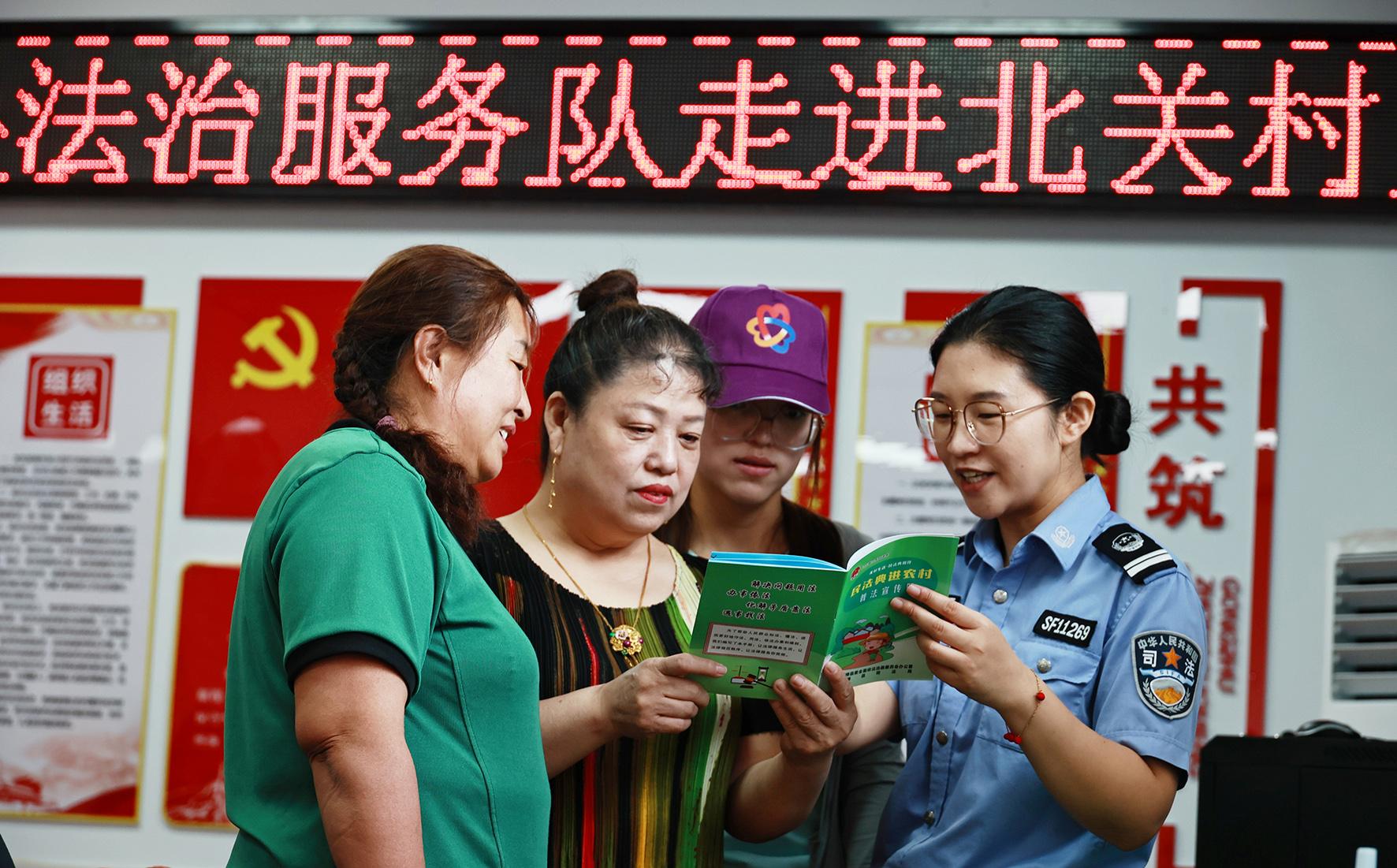 圖為法治服務(wù)隊隊員在龍興鎮(zhèn)北關(guān)村為群眾解讀法律問題。