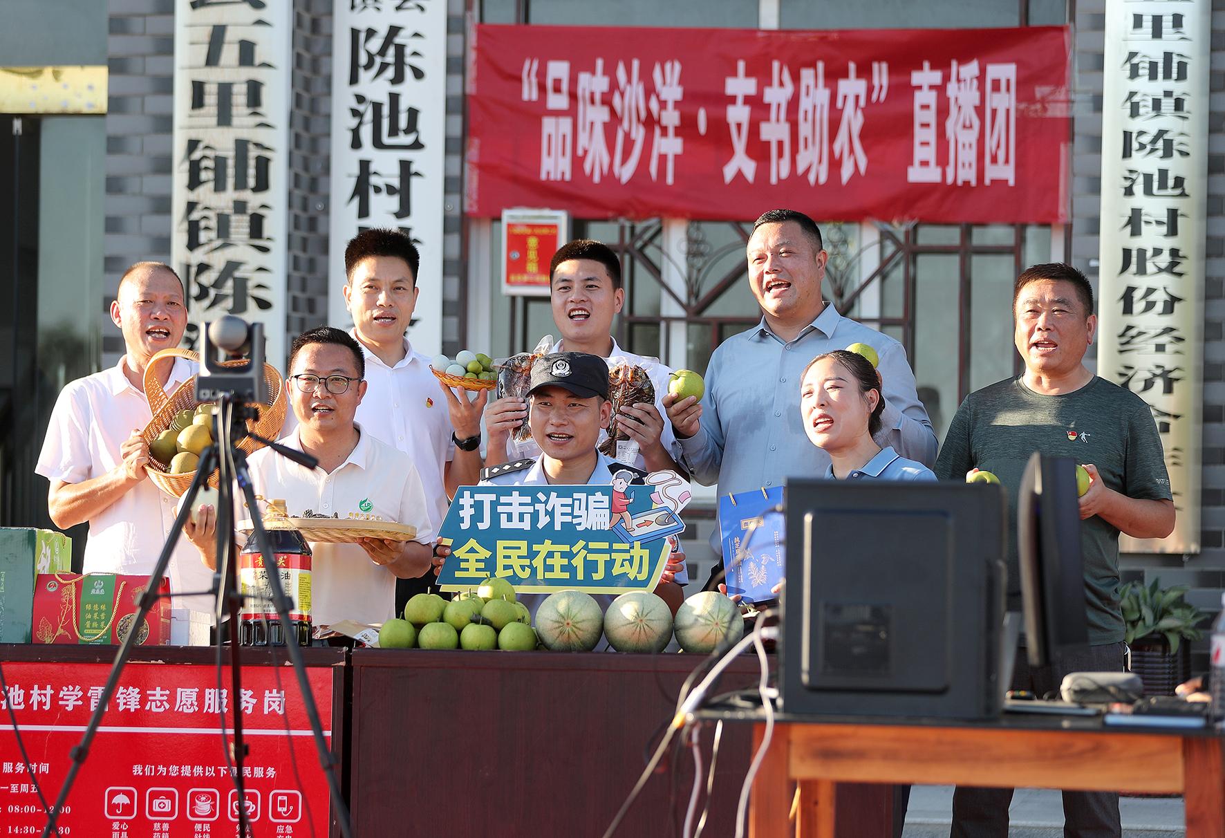 7月3日傍晚,在湖北省沙洋縣五里鋪鎮(zhèn)陳池村,沙洋縣公安局五里派出所民警和7位村支書,通過網(wǎng)絡直播的形式向千家萬戶開展反詐禁毒宣傳。