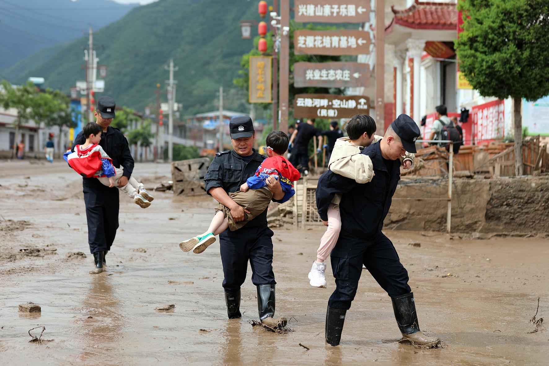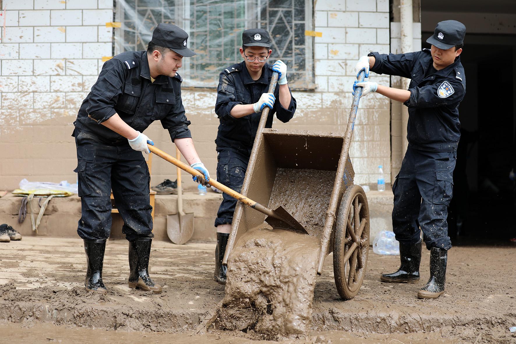 8月9日,甘肅省蘭州市公安局民輔警持續(xù)奮戰(zhàn)在榆中縣救災(zāi)一線,全力開展受災(zāi)群眾轉(zhuǎn)移安置、重要物資搶運(yùn)等工作。