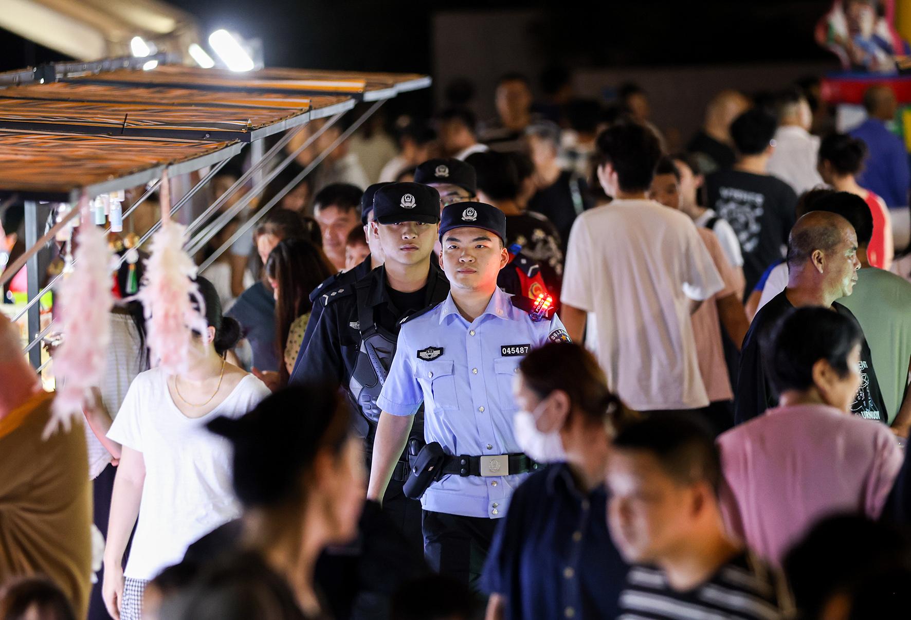 8月18日晚,浙江省嘉興市公安局南湖區(qū)分局新豐派出所結(jié)合夏季行動,在轄區(qū)內(nèi)商圈、夜市、燒烤攤等人員密集場所,加大巡邏頻次,確?!耙娋?、見警車、見警燈”,有效提升群眾安全感,守護(hù)夏夜煙火氣。