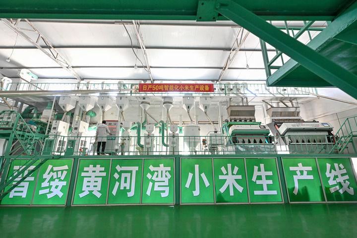 2025年7月1日拍攝的山西省呂梁市興縣晉綏黃河灣農(nóng)業(yè)開發(fā)有限公司的小米生產(chǎn)線。抗戰(zhàn)時(shí)期,地處晉西北地區(qū)的興縣和靜樂(lè)縣是晉綏抗日根據(jù)地的一部分。新華社記者 李鑫 攝