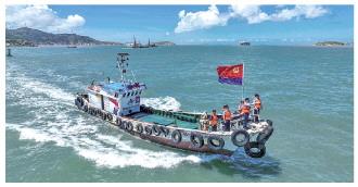 圖為浙江省岱山縣公安局羅家岙派出所民警近日乘坐“瀛洲紅帆船”開展海上巡查。 本報通訊員 鄒訓(xùn)永 攝
