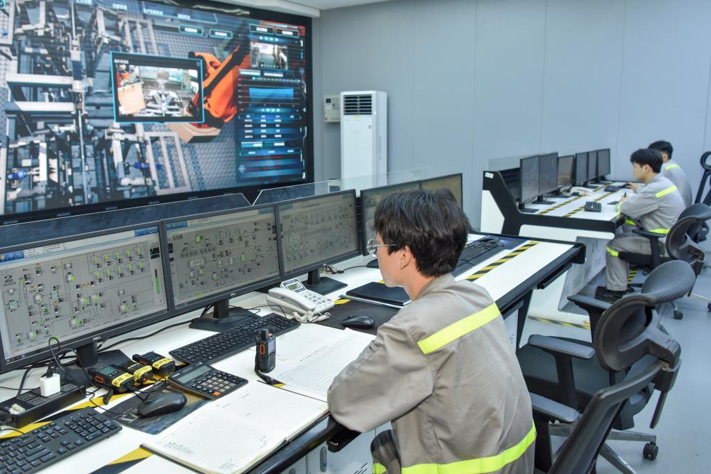 8月14日,銅陵有色金冠銅業(yè)分公司奧爐電解車間內(nèi),工作人員正在查看技術參數(shù)。(儲著傳 攝)