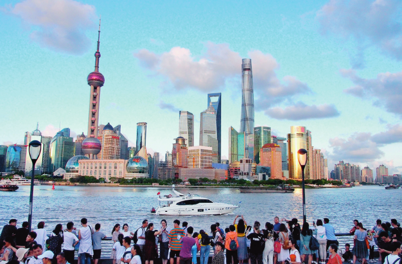 游客在上海外灘欣賞浦東陸家嘴景色(資料照片)。陳飛攝/本刊