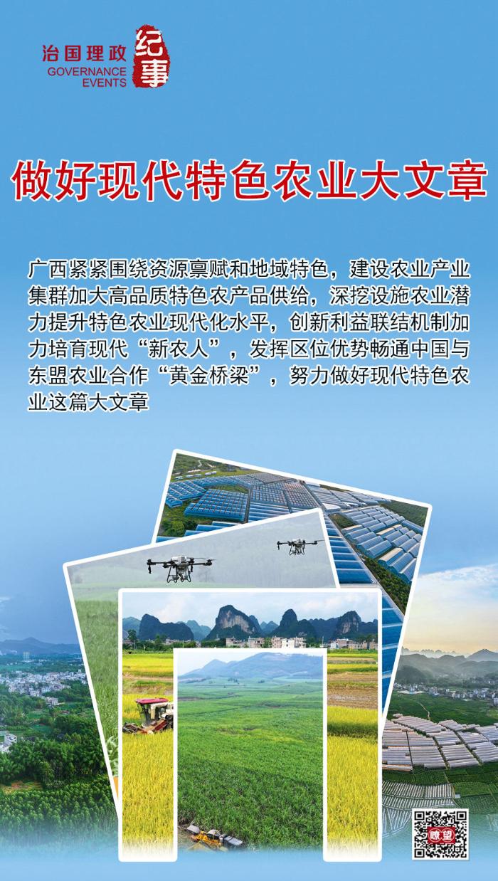 ◇廣西緊緊圍繞資源稟賦和地域特色,建設農(nóng)業(yè)產(chǎn)業(yè)集群加大高品質特色農(nóng)產(chǎn)品供給,深挖設施農(nóng)業(yè)潛力提升特色農(nóng)業(yè)現(xiàn)代化水平,創(chuàng)新利益聯(lián)結機制加力培育現(xiàn)代“新農(nóng)人”,發(fā)揮區(qū)位優(yōu)勢暢通中國與東盟農(nóng)業(yè)合作“黃金橋梁”,努力做好現(xiàn)代特色農(nóng)業(yè)這篇大文章。