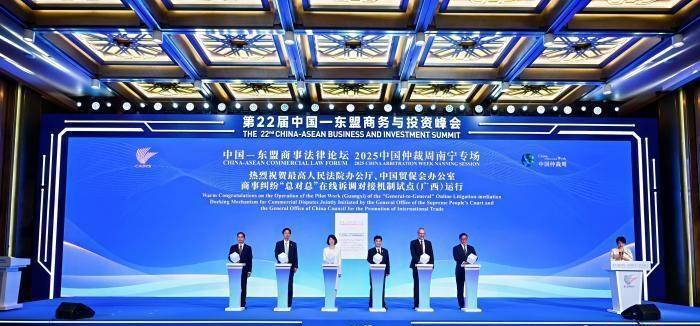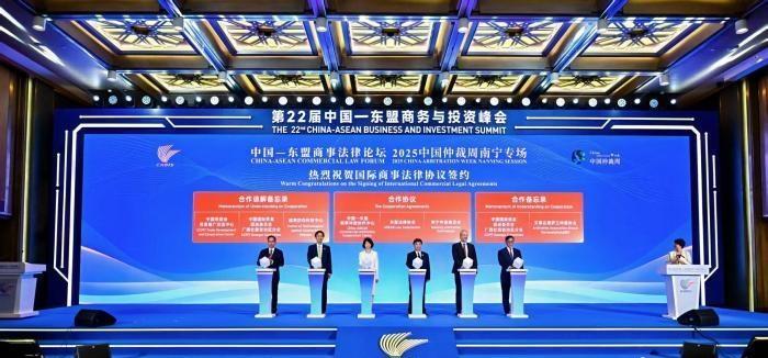 第22屆中國—東盟商務(wù)與投資峰會(huì)9月17日—21日在廣西南寧召開,期間中國—東盟商事法律論壇在南寧舉辦?;顒?dòng)中,中華人民共和國二級(jí)大法官、廣西壯族自治區(qū)高級(jí)人民法院院長黃海龍,中國國際貿(mào)易促進(jìn)委員會(huì)副會(huì)長李慶霜等嘉賓見證系列合作成果的達(dá)成。