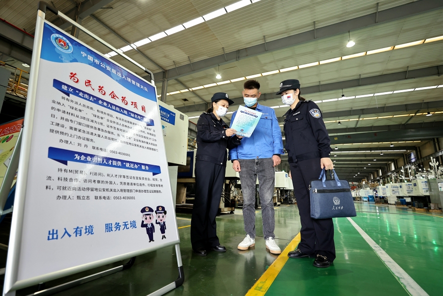 圖為10月29日,安徽省寧國(guó)市公安局出入境管理大隊(duì)聯(lián)合行政審批科集中開(kāi)展“為民為企為項(xiàng)目”防范宣傳進(jìn)企業(yè)活動(dòng)。活動(dòng)旨在問(wèn)需于企、問(wèn)計(jì)于企,著力為企業(yè)提供更加便捷高效的管理與服務(wù)。法治日?qǐng)?bào)全媒體通訊員 高鵬 攝
