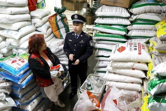 圖為春耕春播時(shí)節(jié),貴州省赤水市公安局組織民警開(kāi)展“綠劍護(hù)農(nóng)”行動(dòng),對(duì)市場(chǎng)銷售的種子、化肥、農(nóng)藥等農(nóng)資產(chǎn)品進(jìn)行拉網(wǎng)式檢查,打擊坑農(nóng)害農(nóng)違法行為,為春耕生產(chǎn)保駕護(hù)航。法治日?qǐng)?bào)全媒體通訊員 王長(zhǎng)育 攝