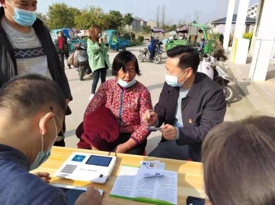 圖為2022年3月4日,湖北省潛江市人社局在光明社區(qū)為社區(qū)居民開展人社政策宣傳,并現(xiàn)場(chǎng)辦理發(fā)放第三代社??ā?傅禹銘 攝