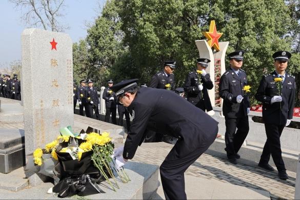 3月30日,湖北省襄陽(yáng)市公安局組織市、區(qū)公安機(jī)關(guān)130余名民警開展清明紀(jì)念公安英烈活動(dòng)。圖為民警向公安英烈獻(xiàn)花。 鄭瑞 攝