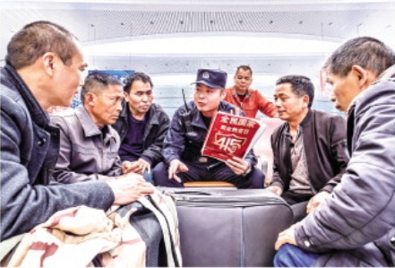 圖為孫斌壽在烏魯木齊站候車大廳進(jìn)行法治宣講。 烏魯木齊鐵路公安處供圖