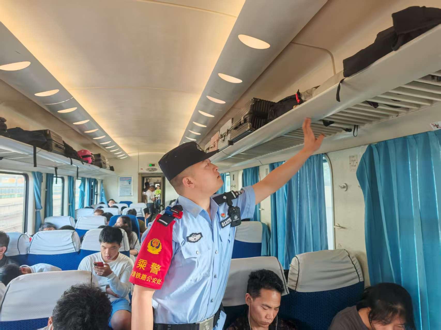 韓士龍,作為一名入警尚不滿兩年的青年民警,從和師傅共同值乘到單獨(dú)值乘,從高鐵到普速,一點(diǎn)點(diǎn)適應(yīng)著快節(jié)奏、高強(qiáng)度的工作模式。開展車廂巡查、處置列車警情,他在一次次的值乘中不斷摸索經(jīng)驗(yàn)。每次遇到問題,他都會記在工作日志中,值乘結(jié)束后加以復(fù)盤,有搞不懂的地方,也要第一時(shí)間到隊(duì)里向隊(duì)長和同事請教。問題被解決,值乘經(jīng)驗(yàn)也越來越豐富。暑期到來,韓士龍已經(jīng)能夠得心應(yīng)手、積極自信,用熱心的服務(wù)為民辦事,用真摯的感情守候旅客,用熟練的業(yè)務(wù)解決問題。
