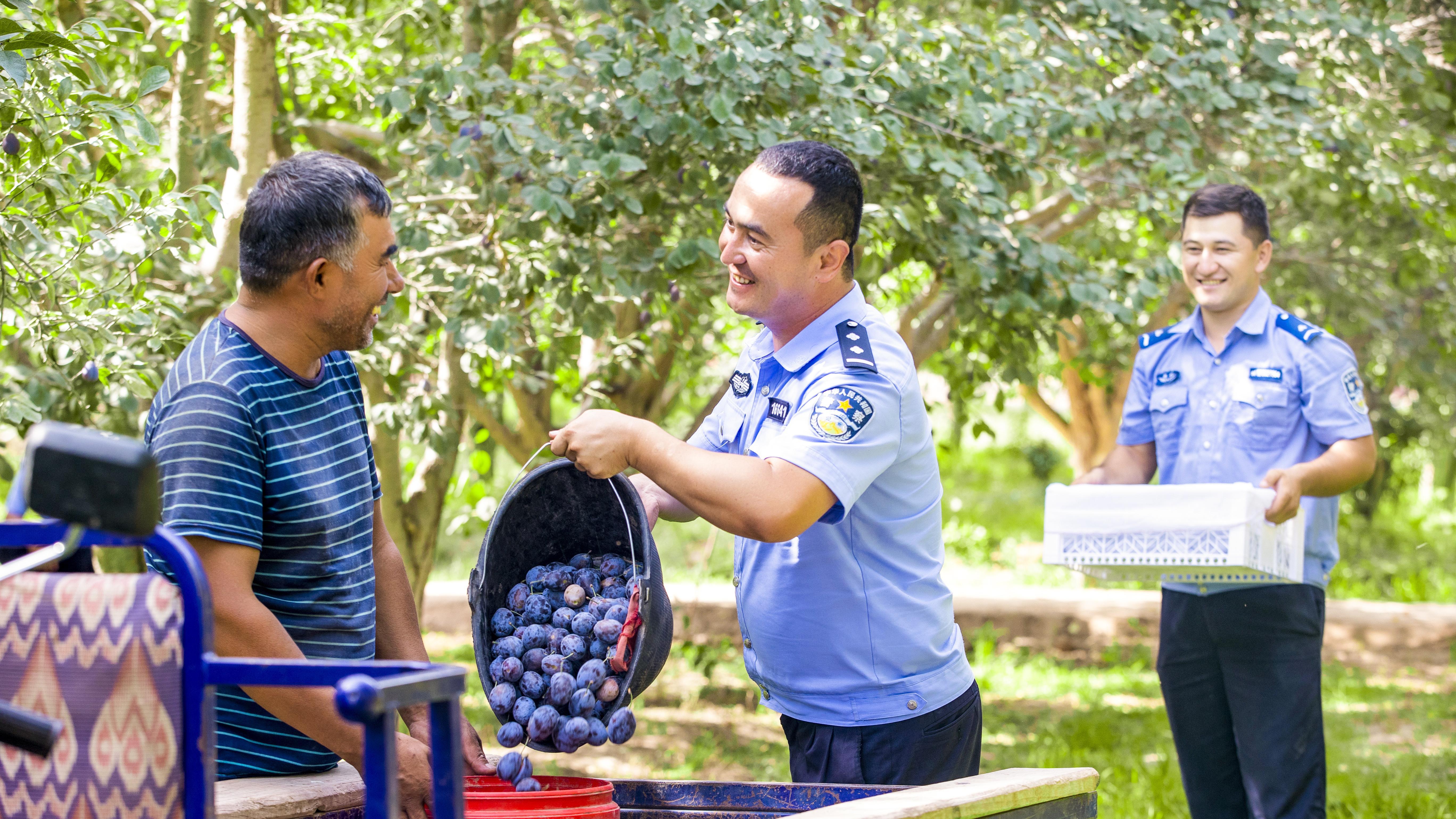 8月的新疆伽師縣,當(dāng)紫紅色的新梅壓彎枝頭,伽師縣公安局的“新梅警務(wù)”準(zhǔn)時(shí)“上線”了。