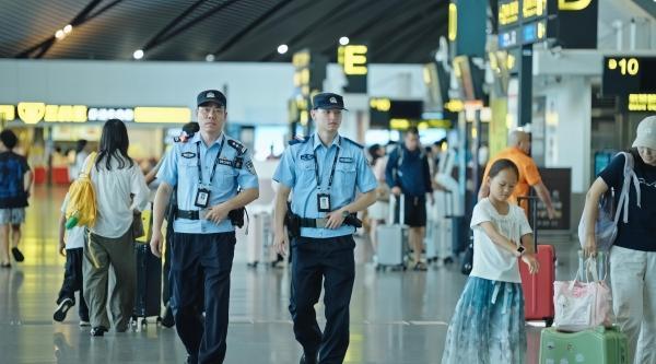 節(jié)日期間,自治區(qū)公安廳機場派出所堅持科學(xué)用警,航站樓出入口、值機柜臺、安檢現(xiàn)場、到達(dá)廳……人流最密集的地方,總有民輔警挺拔的身影。