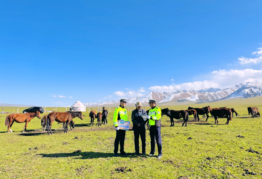 10月7日,新疆新源縣公安局交通管理大隊將交通安全課堂搬進轄區(qū)景區(qū),交警們化身“安全向?qū)А?,結合景區(qū)道路彎多、牛羊穿行等特點,用通俗的語言向游客講解山路駕駛技巧、避讓牲畜注意事項,并耐心解答游客關于景區(qū)路況、行車路線等疑問。