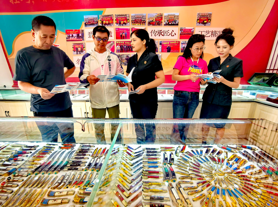 “為啥那兩把小刀看起來(lái)一樣,價(jià)格卻不同?”一名游客站在柜臺(tái)前詢問(wèn)。