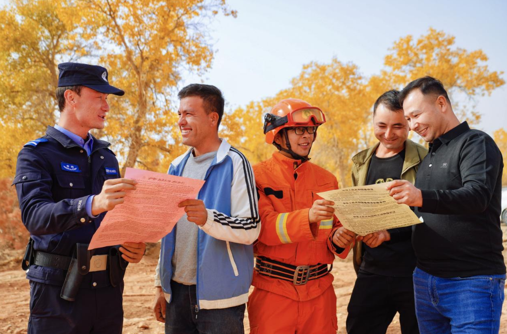 金秋十月,新疆溫宿縣共青團(tuán)鎮(zhèn)薩葉科普胡楊林的6.5萬畝胡楊,由綠轉(zhuǎn)黃,披上盛裝。10月18日,備受期待的溫宿2025胡楊生態(tài)文化旅游節(jié)在這片醉人的美景中如期拉開帷幕。為確保此次活動安全、有序、順利進(jìn)行,溫宿縣公安局組建了強(qiáng)有力的安保隊伍,為八方來客營造一個平安、祥和、歡樂的旅游環(huán)境。在全力維護(hù)秩序、保障安全的同時,溫宿公安將服務(wù)群眾與普法宣傳融入安保工作之中,成為了金色胡楊林中另一道亮麗的“風(fēng)景線”。