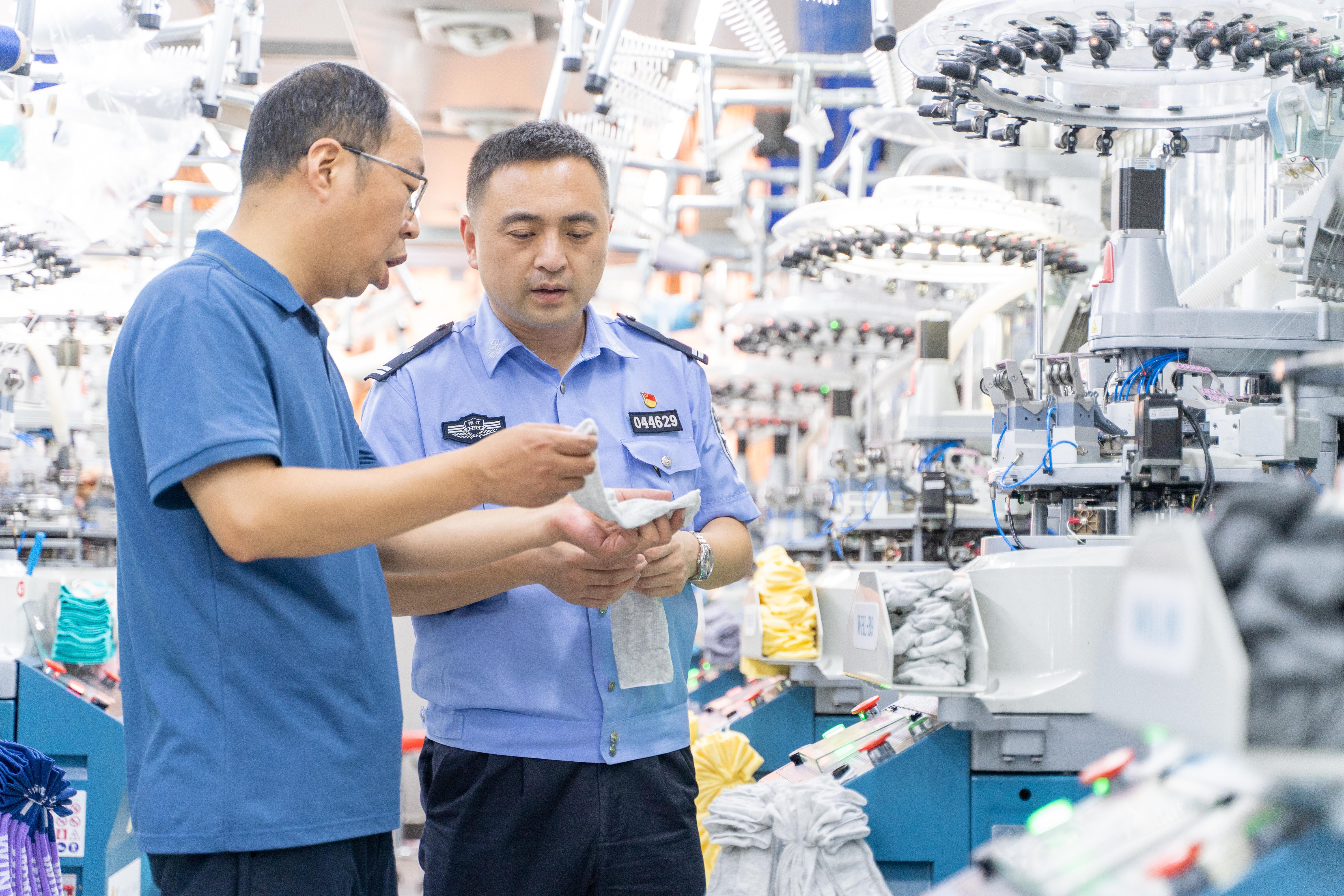 在大唐派出所工作期間,他還將區(qū)域品牌護航這套妙方帶到襪都,面對大唐襪業(yè)品牌被侵權(quán)、小微企業(yè)生存發(fā)展困難等實際問題,推出“助微強鏈”產(chǎn)業(yè)提升項目,不僅建立了警企聯(lián)絡(luò)室、知識產(chǎn)權(quán)保護工作室等實體平臺,還形成了“事前普法、事中打擊、事后維權(quán)”的全流程服務(wù)閉環(huán):邀請知識產(chǎn)權(quán)專家開展培訓,創(chuàng)建“平安車間”,建立企業(yè)內(nèi)的聯(lián)防聯(lián)動機制……短短一年時間上門送教1000余次,化解涉企風險隱患500余起。