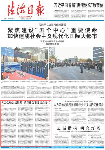 法令行則國治,文化興則國興。我們要切實擔負起新征程上的新使命,全面貫徹實施憲法,在大力弘揚憲法精神中堅定法治自信,在建設(shè)社會主義法治文化中堅定文化自信,引導全社會堅定不移走中國特色社會主義法治道路,為全面建成社會主義現(xiàn)代化強國、實現(xiàn)第二個百年奮斗目標而團結(jié)奮斗。