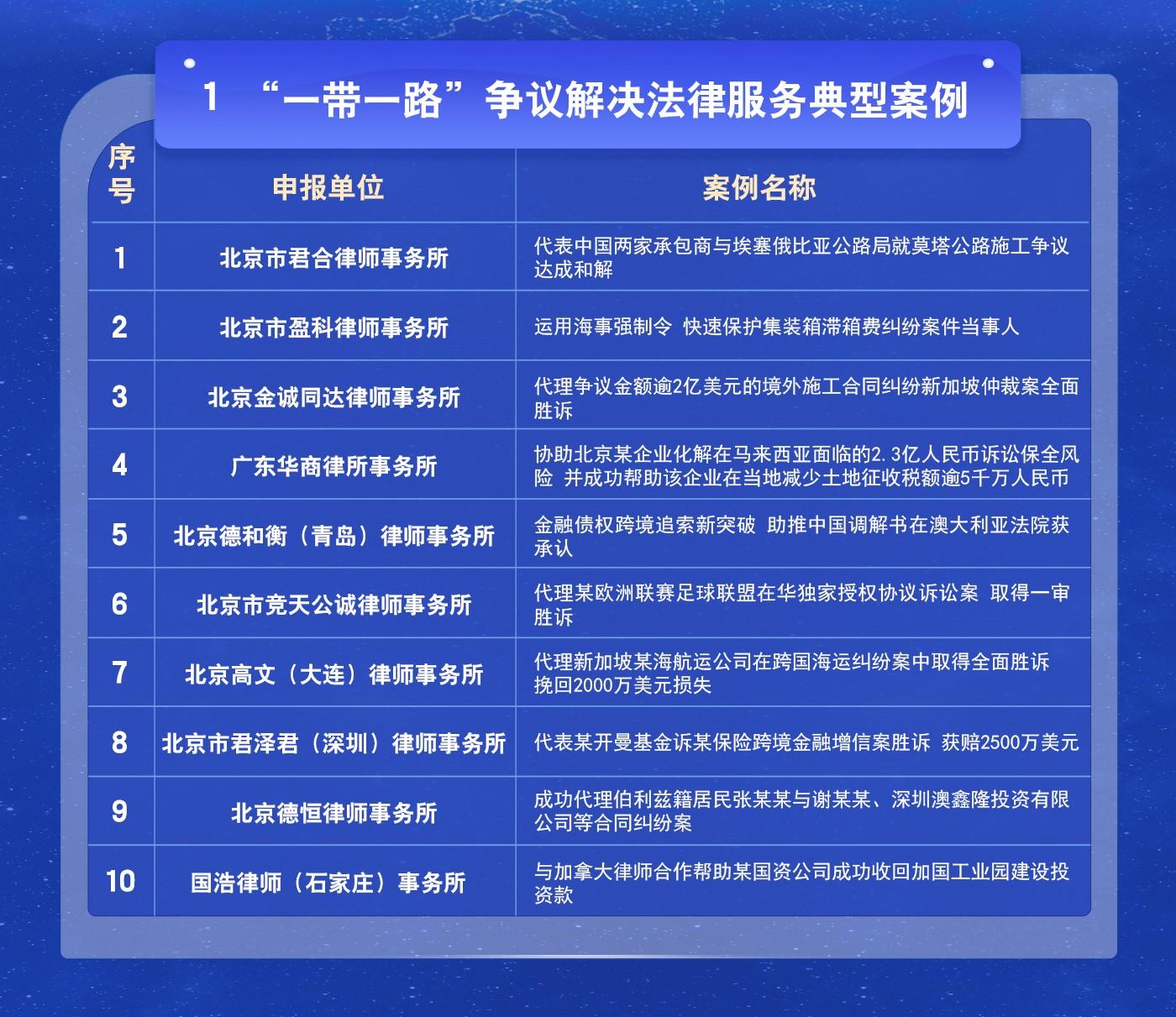 “一帶一路”爭議解決法律服務(wù)典型案例名單