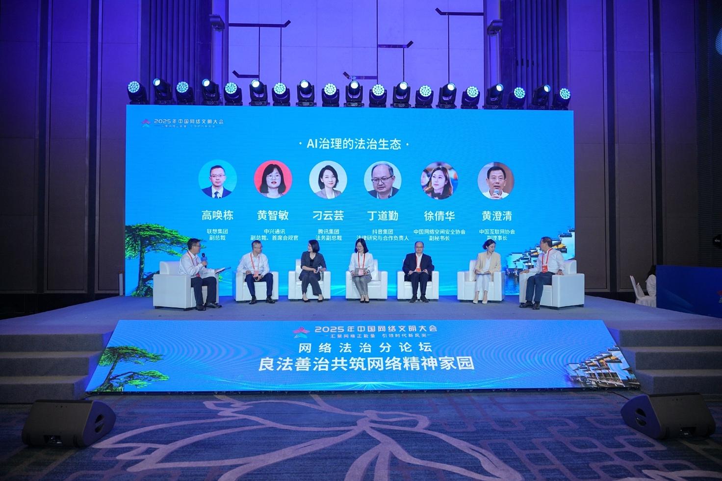 6月10日,2025年中國網(wǎng)絡文明大會網(wǎng)絡法治分論壇在安徽合肥舉行。論壇以“良法善治共筑網(wǎng)絡精神家園”為主題,在圓桌對話環(huán)節(jié),與會嘉賓圍繞“AI治理的法治生態(tài)”議題,就AI時代的企業(yè)合規(guī)、影視產(chǎn)業(yè)發(fā)展、法治生態(tài)建設等問題展開探討,共商新時代背景下網(wǎng)絡法治建設發(fā)展議題。