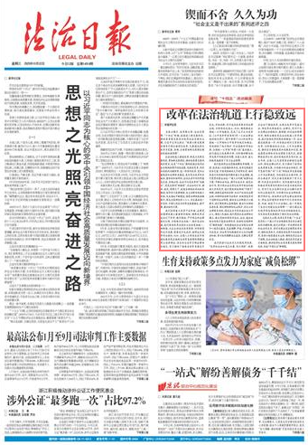 在法治軌道上推進(jìn)改革,既是立足新發(fā)展階段、貫徹新發(fā)展理念、推動高質(zhì)量發(fā)展的現(xiàn)實需求,也是“十四五”期間我國在經(jīng)濟(jì)社會各領(lǐng)域取得開創(chuàng)性進(jìn)展、突破性變革、歷史性成就的關(guān)鍵因素。這一階段的改革,更加注重制度和治理體系建設(shè),更加突出改革的系統(tǒng)性、整體性和協(xié)同性,法治在其中的作用愈發(fā)凸顯。實踐證明,法治不僅是改革的“壓艙石”,更是發(fā)展的“助推器”。在法治的引導(dǎo)、推動、規(guī)范、保障之下,我國各領(lǐng)域改革向縱深推進(jìn),經(jīng)濟(jì)實力顯著增強(qiáng),自主創(chuàng)新實現(xiàn)重大突破,民生福祉不斷增進(jìn),國家治理效能持續(xù)提升,綠色發(fā)展理念深入人心,安全基礎(chǔ)進(jìn)一步夯實。中國已然成為世界發(fā)展最穩(wěn)定、最可靠、最積極的力量。