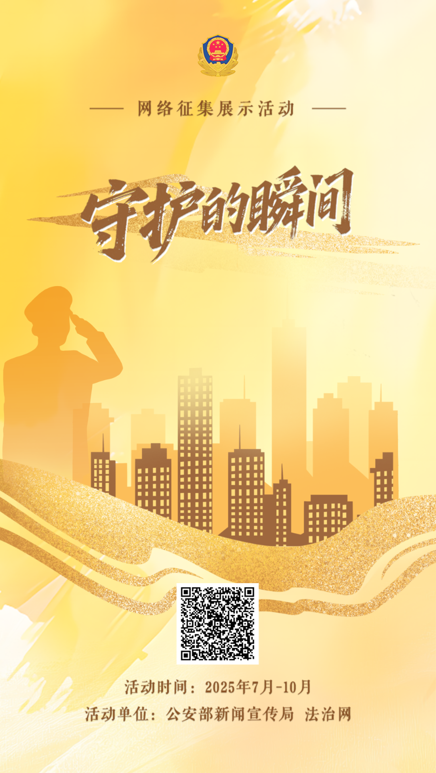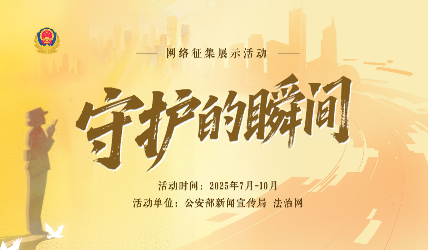 由公安部新聞宣傳局、法治網(wǎng)聯(lián)合開展的“守護(hù)的瞬間”網(wǎng)絡(luò)征集展示活動(dòng)于7月3日啟動(dòng),面向全社會(huì)征集公安機(jī)關(guān)忠誠履職盡責(zé)、熱忱為民服務(wù)、規(guī)范文明執(zhí)法和打擊違法犯罪的感人瞬間...【詳情】