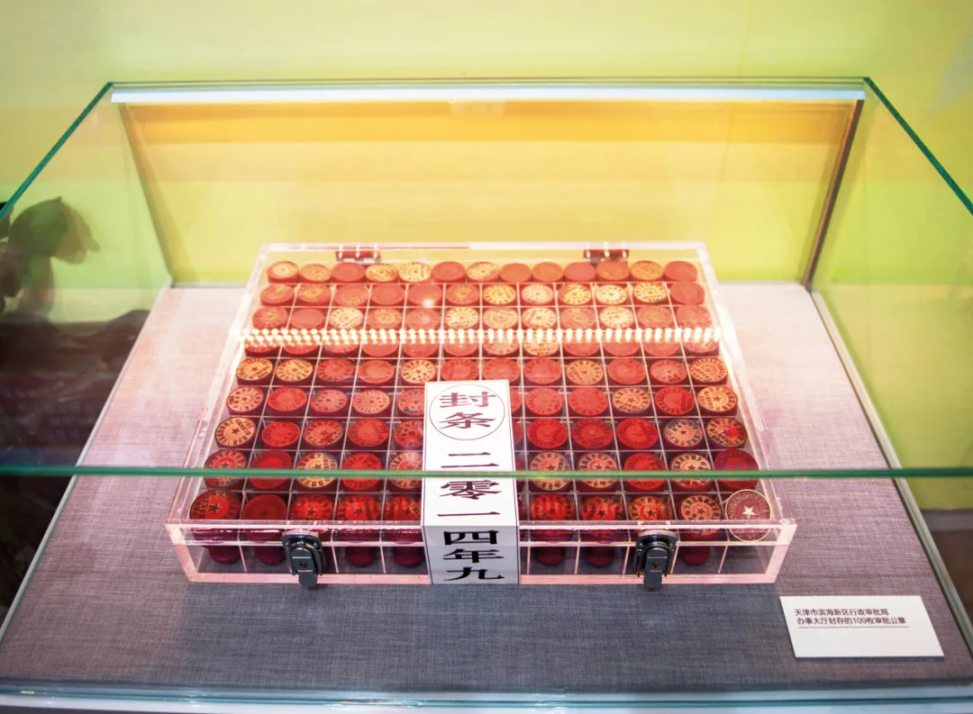 改革和法治如同鳥之兩翼、車之兩輪。必須堅持全面依法治國,在法治軌道上深化改革、推進中國式現(xiàn)代化。圖為中國國家博物館收藏的來自天津市濱海新區(qū)的109枚審批公章(資料照片)。 新華社發(fā)